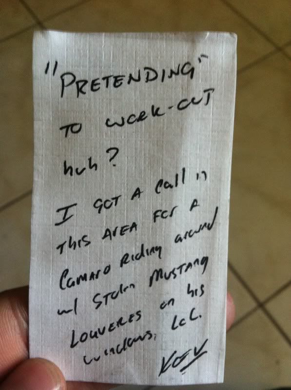 Saw the car driving back from 2nd St... pulled in to drop a flyer and realized it was you! Some nice "scenery" coming out of the gym tho... :tweetz: no wonder you started going back!!!!
