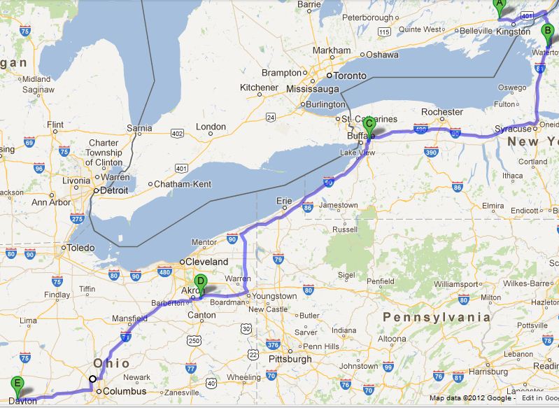 that should work, and would be plently of time to meet up with the mid atlantic group at the intersection of I-70 and I-77. Maybe we could meet up at a rest stop on I-90 near Syracuse. How many cars are we talking