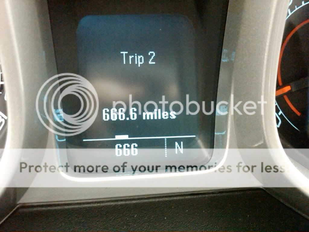 As I was done filling the Camaro up on it's third tank of gas, I started the car and happened to glance at the odometer and notice "666". Clicked on the trip meter, and it was 666.6 miles. I'm not sure if the car is evil, or if it is only evil at the gas pump. LOL!