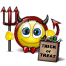 Hi everybody! Just had to pop in and say Happy Halloween! Partly because I've got these smileys which would look pretty silly around Christmas Did I miss anything? Anybody here? Hello. Hey, what's with all the scorch marks on the walls? Hmmm. Anyway, Happy Halloween!