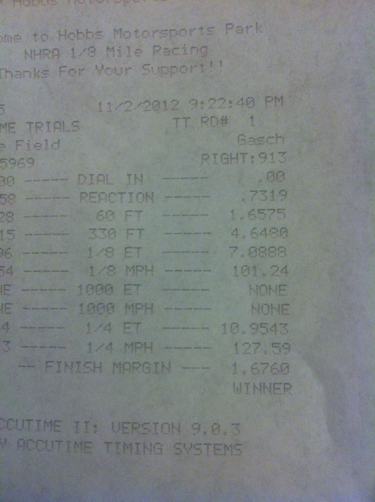 I have since got down to 12.03 @ 119mph but I do not have a pic of that time slip currently.