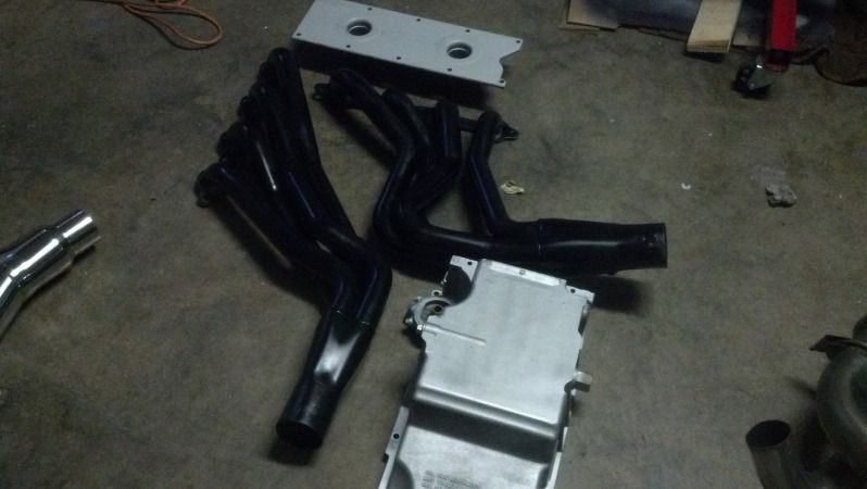 More shiny stuff. Stainless off road y pipe from Texas speed. Stripped and coated my headers oil pan and valley cover.
