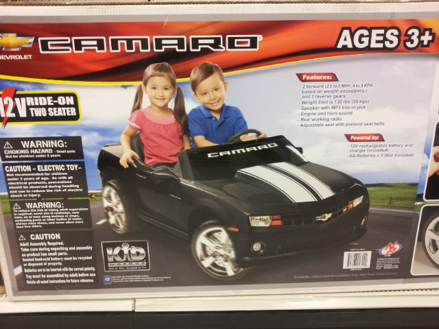 Target has two of these on clearance for $169, normally $329! Top speed of 5 MPH (they don't disclose the 1/4 mile time). Working IPOD/MP3 interface (and it says working radio???), drilled brake rotors and genuine chromed SS rims!!!