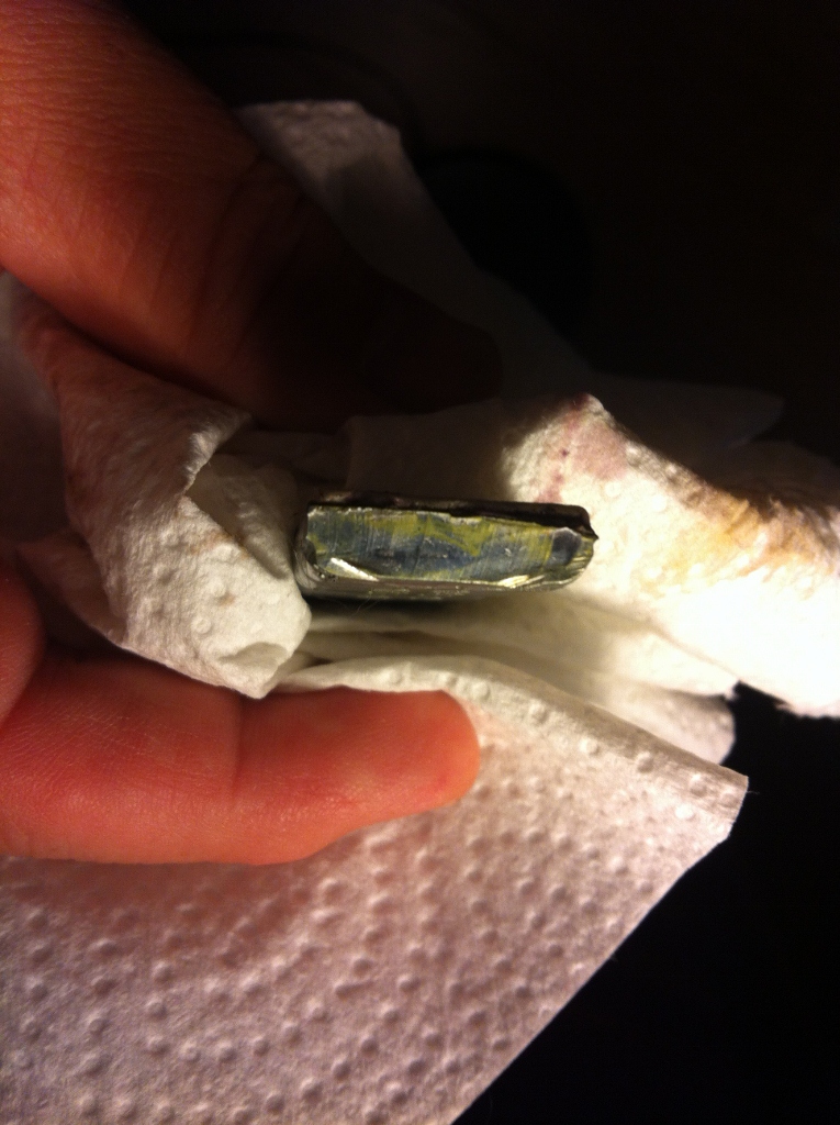 Well had a spare set of Weights laying around and soaked them for a few hours today. You can see just a hint of green on the side edge. It rinsed right off. Still think it is a harmless reaction to Zinc in weights.