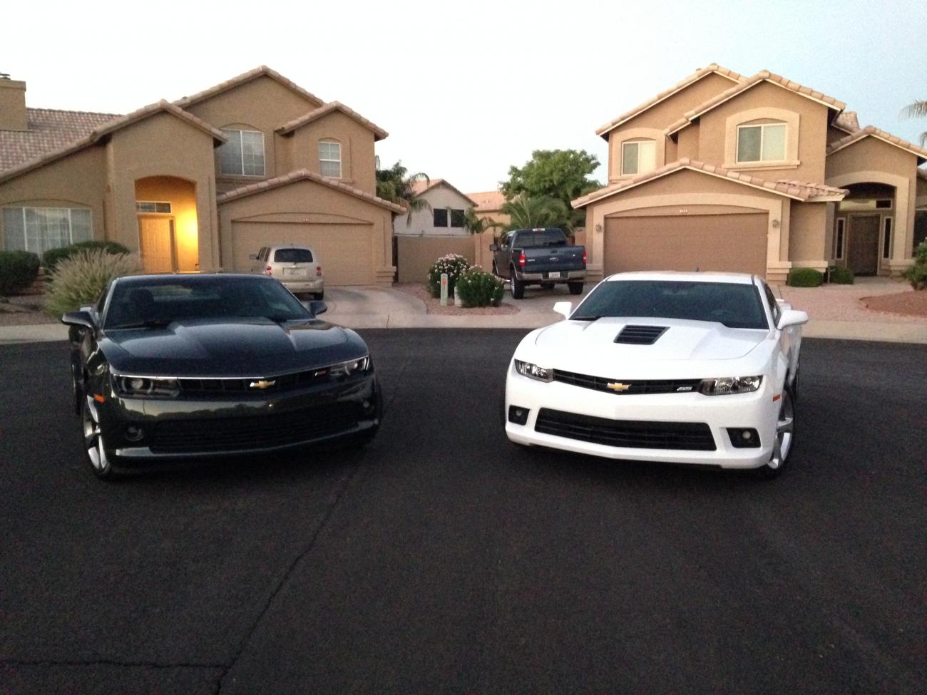 Ironically, one of my good friends also purchased a camaro today also... He got a white 2014 1SS automatic. Included a picture of our cars together. Now time to hit the road, see you all soon!Perma-grin activated! |