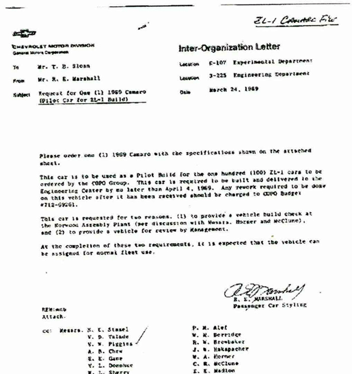 The closest possible version ALMOST available was the proposed (2 prototypes built, Black with Gold stripes) '69 COPO 9567. Here's what it would have been included: [EDIT from here - http://www.camaros.net/forums/showthread.php?t=55107 ] Standard options slated for production COPO 9567 ZL-1Special Camaros included: Tuxedo Black paint with Special Gold striping ZL-1 Street Detuned Engine Z22 Rally Sport M21 (M22 Optional) 4-spd manual or Heavy Duty M40 3-spd automatic transmission J52 Power Disc Brakes - Front only N40 Power Steering D55 Center Console U16 Tachometer F41 Special Performance Suspension ZN2 COPO 9567 Springs G80 Positraction (4.10 ratio w/M21 or 3.55 ratio w/M40) K85 61 Amp Generator K66 Transistor Ignition D80 Auxiliary Valance Panel (Rear Spoiler) Wider Front Bumper Valance Panel (Front Spoiler) VE3 Special Front Bumper (only Prototype “B” had this) Racing Type Mirrors (Only Prototype “B” had these? – Can’t tell from photos. Prototype “A” did not.) Exhaust Resonators Tail Pipe Extensions Special Steering Wheel F-70-15B Nylon Blackwall w/Gold Lettered Tires 15x7 Wheels (Prototype “B” had 15x8s in the rear) Special Hub Caps & Wheel Nuts Wheel Trim Rings Fender Splash Guards (Prototype cars did not have these) Special Striping, Decals for the Hood, Grille & Rear End Panel (The grille lettering was slightly different for each of the two prototype cars – see pictures below) Wheel Opening Mouldings Deleted (only Prototype “B” had these deleted) Special Instrument Cluster (for Transistor Ignition) Other Features of RPO L-78 except Fender Emblems The COPO 9567 cars were already slated to sell for $8581.60 for the (M21) 4-spd version and $8676.60 for the (M40) 3-spd automatic version. [M22 + $100] I believe that because there was more to the COPO 9567 ZL-1 Special Camaro than simply adding and deleting existing components (the process used for building a COPO 9560 Camaro), it required more lead-time within GM to make the car a reality. There was artwork to be done, badging to be made, and another batch of engines to produce, amongst other things. Given the reaction to pricing on the 9560 cars, the proposed price for a COPO 9567 was also too high. Exactly how close the COPO 9567 Camaro actually came to production is unknown, but from the documentation I’ve accumulated, it’s clear that Chevrolet was more than just considering building these cars. They had done a significant amount of planning, engineering, prototyping, and pricing of them to clearly show that the car was ready to go to production. NO 4WDB-CC/ABS/TC/StabiliTrak/Airbags/5mph bumpers/GG Tax/Crash Testing/P. Windows-Locks-Tilt-Cruise-forged alum. wheels-Radial tires etc. CPI - 1/01/1969 to 1/01/2014 = 6.50 X $8681.60 [M22] = $56,500. 4WDB (if available w/HD 12-bolt, which they weren't) @ $500 X 6.5 = $3,250 extra, theoretically... So, a '69 car without 4.5 DECADES of technological improvements @ $60Gs, today, MINUS a LOT! This makes a $75,000 all-in number very respectable. Not what I personally hoped for ($65-ish before Fr/GG, so off by 10%), but very respectable. Especially for a short production run... Last edited by LOWDOWN; 01-03-2014 at 02:55 PM. |