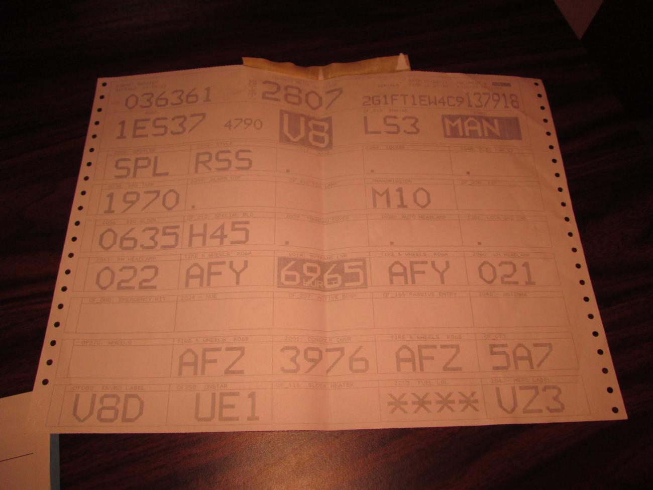 There will be two door rider build sheets in each of the inner door pockets and one more detailed build sheet in the trunk along with the floor mats at time of delivery. Always ask for these document's when your Camaro arrives, otherwise in most cases they are removed and lost for good . Sometimes if your real lucky you'll find a door rider in the centre console glovebox that's been signed!