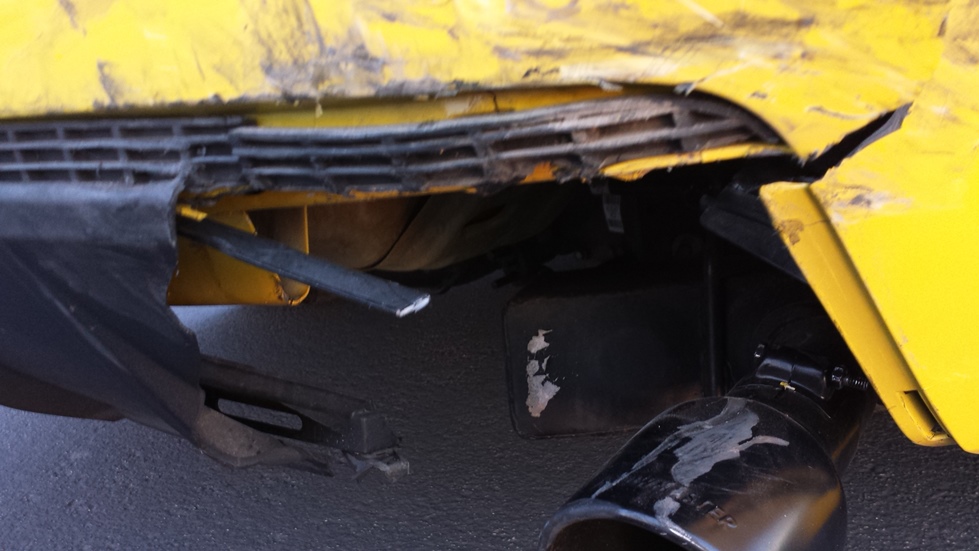 I think it helped the impact that she didn't hit me square on the rear end. It still felt pretty hard though. Just from looking under the car the frame didn't look severely bent anywhere, looks like the mount for the steel bumper got bent a bit though. We will find out, it is at the shop and should hopefully know a plan of attack in the next couple days.