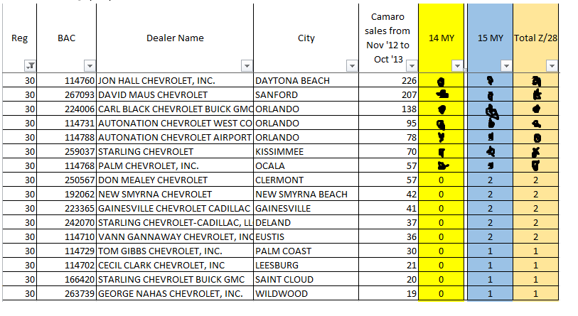 It is clear Chevrolet informs dealers about the allocation number given to other dealers, but why would they do that? Look at poor Don Mealy Chevrolet. They sell just as many (57) Camaros as Palm Chevrolet, yet Palm received an allocation and they did not? Worse still for Don Mealy is knowing others received more than one allocation and they received zip.