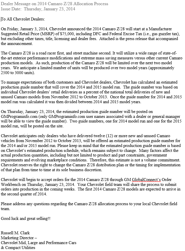 Thanks very much. Now I see Chevrolet is shooting for transparency here because the dealer allocations are formulaic; you either made the cut as per the formula, or you didn't. And if you didn't, as a dealer you hope for production to be higher than anticipated such that if you were on the bubble, you receive an allocation. I suppose this dealer network transparency is meant to defeat cronyism and any "Good 'ol boy" favoritism in allocating hot products.