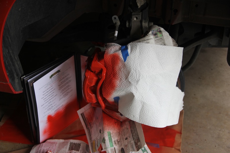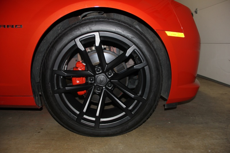 Here are the painted calipers and Factory Reproduction Wheels, I think they look awesome. (Sorry for the really messy garage).
