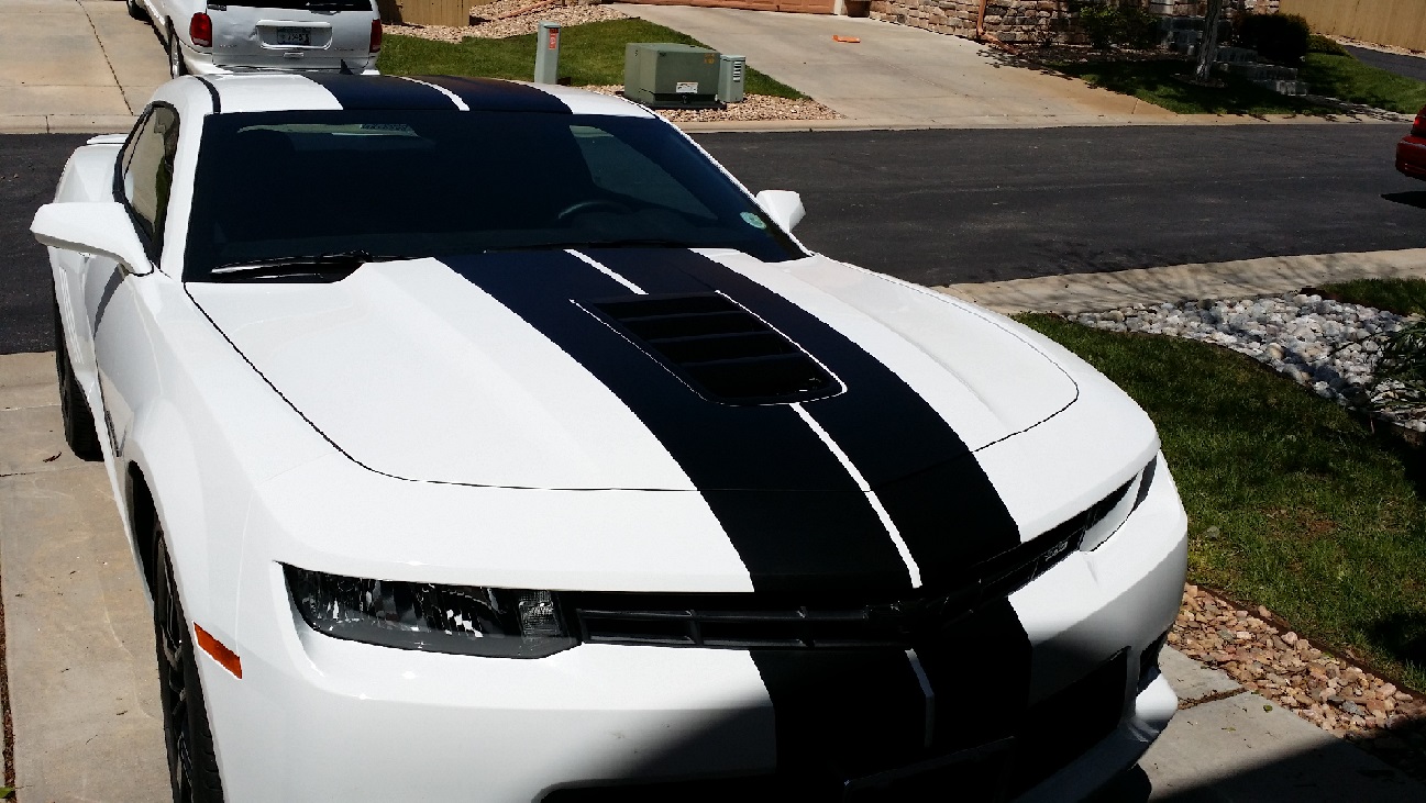 2015 Summit White SS, flat black full length racing stripes, tinted, blacked out bowties, Black 45th Anniversary 20' wheels, NPP Exhaust (fuse pulled), drop in K&N filter.