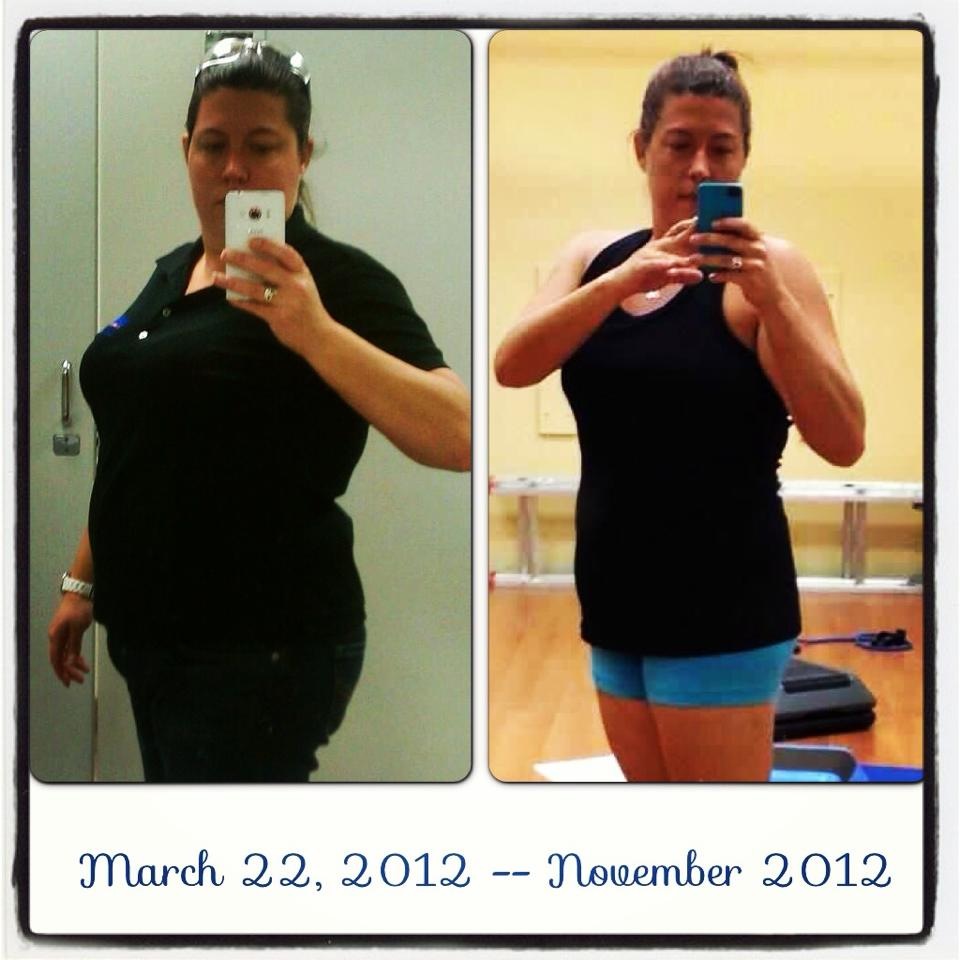 Here is a progression photo (my goal was to lose weight) my goal is to lose a little but trim back up! This was by following a strict meal plan, 1 hour work outs 3 nights a week. (we did arms and upper body Mon, lower body and legs Tues then core and Cardio Thursday) I got obsessive and started running 2 miles a day on lunch here at work, down the street, around the property and cut up through the middle. My trainer ended up upping my protein intake so that I wouldn't do muscle damage, there is a point when you can break down your muscles and start loosing it along with the fat!