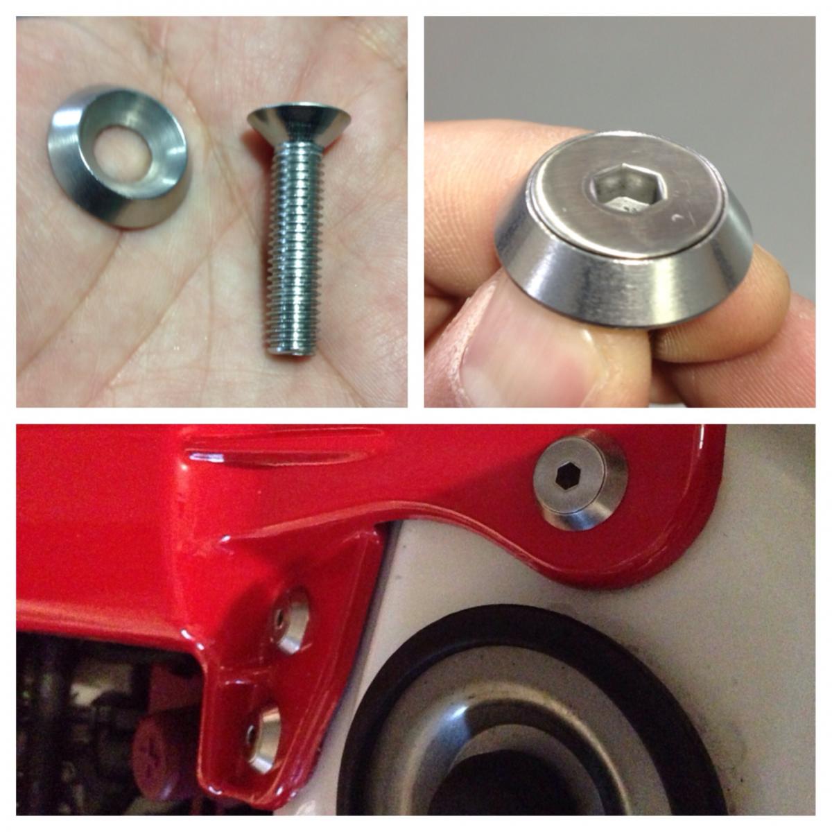 I ordered stainless steel M8x35 flat head bolts (McMaster 93395A412) and stainless M8 countersunk washers (eBay #171066351259). This way I would not have to modify the washers like Ricamaro had to. I do plan on belt sanding the face of the bolts to remove any letters/numbers and polishing the heads and washers to a mirror finish on a buffing wheel. I generally don't like chrome (or shiny) parts on the car...but since I'm getting the strut brace refinished now, those ugly factory OEM bolts have got to go! |