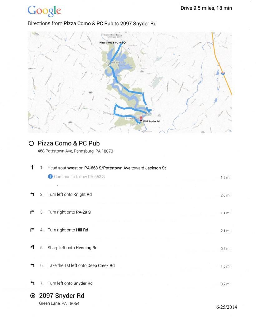 How about the Audubon crew leaves around 11:30. We head up Ridge Pike to Route 29N. At 663 we head South to Pizza Combo. That should place us there around 12:15. Lunch and then off for a ride through Green Lane.