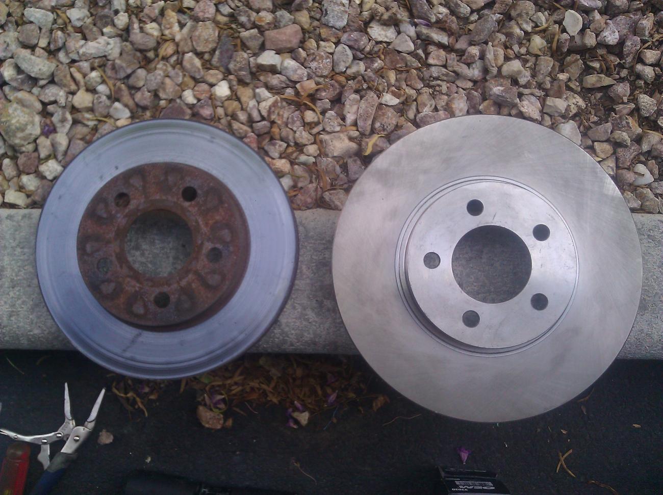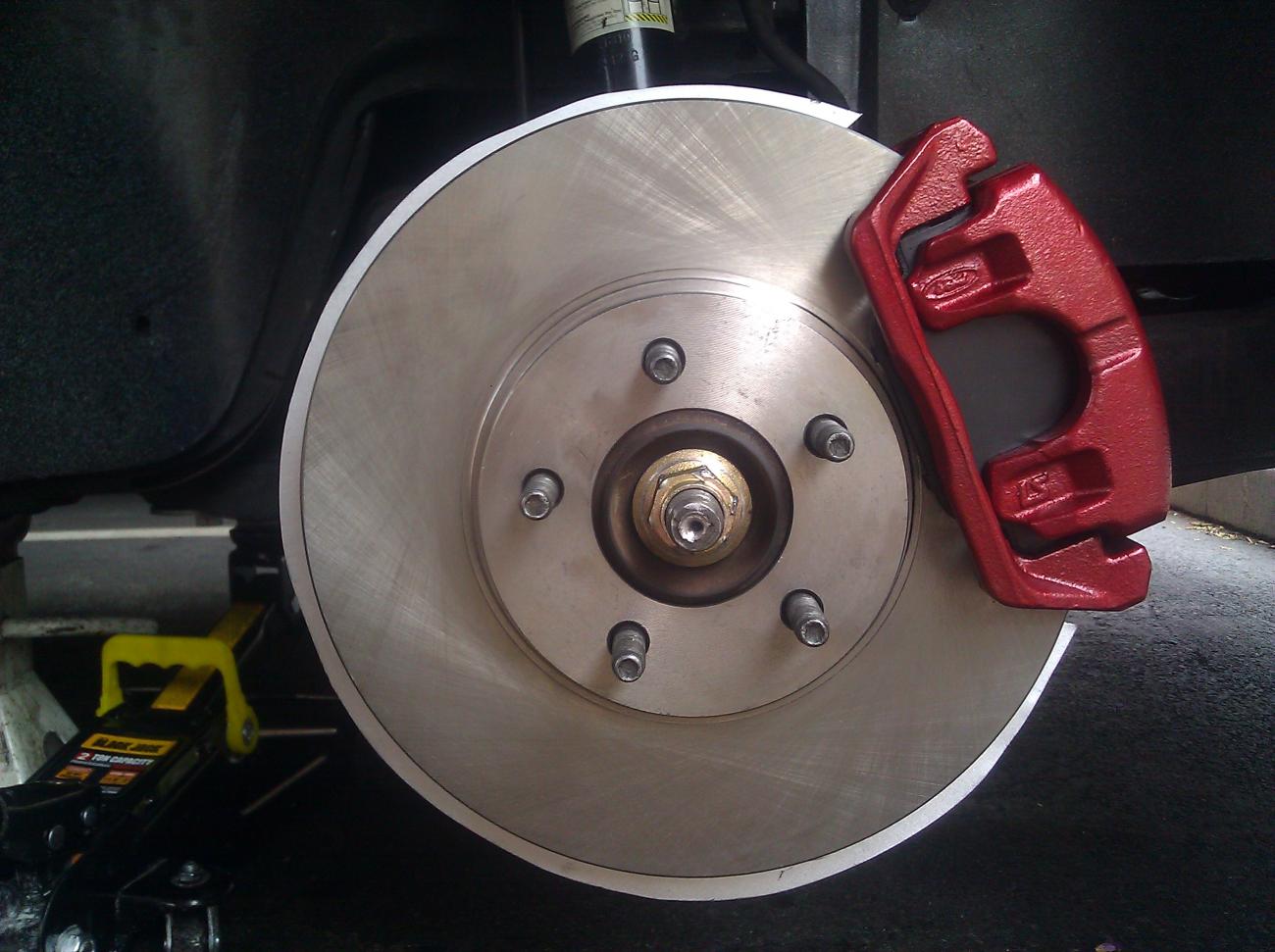 Who knew I would have such a warm reception ![]() At this point I have a DVD touch screen with blue tooth audio, phone and back up camera. I recently added a remote start/keyless entry system. There's something pretty awesome seeing a 23 yr old car start itself with glowing red headlights. Gauges? How about 6 cool LED gauges. No need to actually keep an eye on my Ford Motor, being perfect and all with 234,000 miles I am the supposed LEDgod It had measly 10" rotors, 10's!!! Upgrade to 2007 Taurus calipers and 12" rotors. Check out the comparison below. Oh, I made my own dust shields while I was at it. Why wouldn't I just paint the calipers body color too ![]() They turned out awesome!!! And my lights, wellllll I am a god after all ![]() Cheers to everyone and keep all the positive words coming