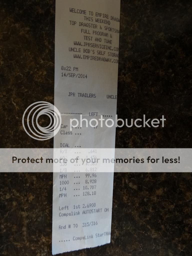 Finally got the number 2 spot back on the all motor list, last night D/A was +600, the best D/A I have ever seen with this car. Ran 10.7's all night, this was my best pass.