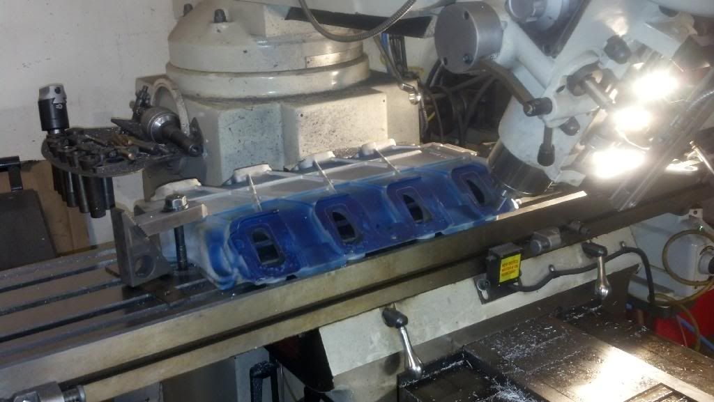 First, I decided to go ahead and port the lower manifold. I've done it before on a new kit, but as I said, this is my first use of a used kit. this is what I found: ![]() I guess the previous owner didn't have a catch can installed. You can see the little pool of oil in the spot where the intercooler "buttons" go that hold the intercooler up. So I went ahead and blasted the manifold before I started porting it. I ported one runner before deciding it was just too much to do all over again. Last time I did one, I did it all by hand. Took FOR-EV-ER. So I decided to rough out the ports with the mill. ![]() Saved HOURS of time with the carbide burr. Milled it out in 45 minutes. One setup shown in the picture, and one from the inside of the manifold that leveled the port floor with the machined area under the intercooler. You can see some of the difference here in this inside shot, that shows the new o-rings required when reassembling the upper and lower manifolds. ![]() I have the sizes required written down somewhere in the shop for anyone taking this on in the future. Next on the list was pieces I had to come up with. I was so excited to get the blower I didn't go through the instructions enough times to catch everything that should have been in the kit that I didn't get. This was: The throttle body extension harness, the MAP extension harness, the coolant pump relay harness, and the 76mm tensioner pulley. The first three weren't too bad, I've done 12V wiring for a long time, both as a hobby and professionally, so a little soldier and heat shrink did the job for me, but for someone else, maybe not so easy. On the relay harness, I had the plug and leads for the pump, so I only had to scare up a 30A standard 12V relay that I had laying around, and a couple female spade terminals, and more heat shrink and soldier, along with some 1/4 wire loom. On the tensioner pulley, I've found that a 2003 silverado tensioner is the right size and everything, and only about $16 locally. It is required to get maximum belt wrap around the drive pulley. I'm not getting any belt slip even though I haven't put the smaller pulley on yet. However, it made installing the brand new belt almost impossible. |