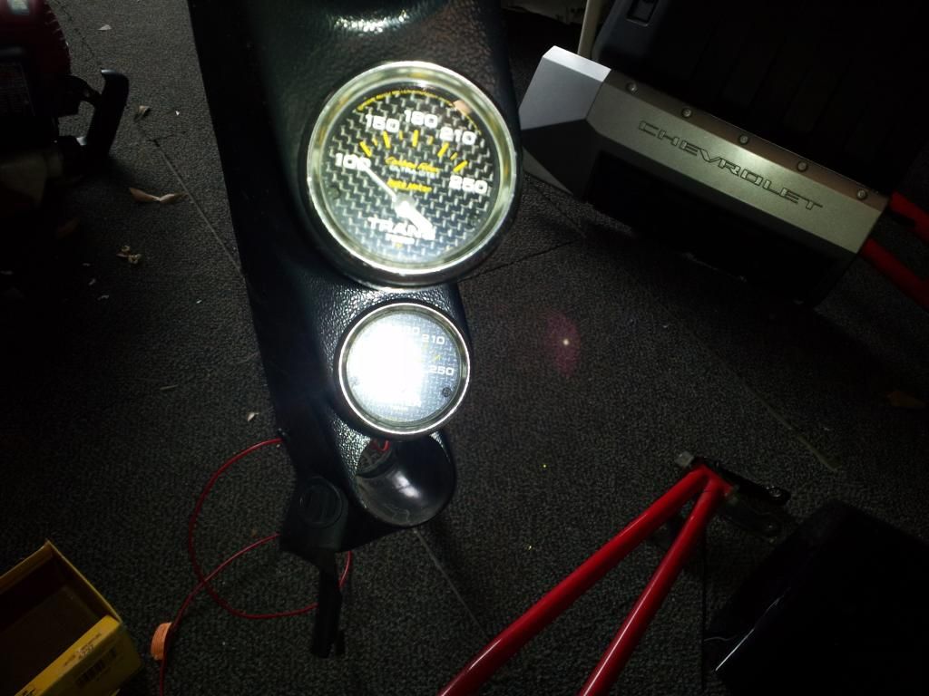 Autometer Carbon Fiber Gauges (4737 Water Temp / 4757 Trans Temp) in a fourth gen t-top full pillar triple gauge pod mounted to 4th gen a-pillar. Just pull yours off and replace it with this setup. Gauges were hooked up to power but never hooked up to senders. One sender is missing, but I have the adapters, grommets, etc. that came with gauges. Gauges sell for $66 each at Jegs, gauge pod was ~$100 - $150 obo.