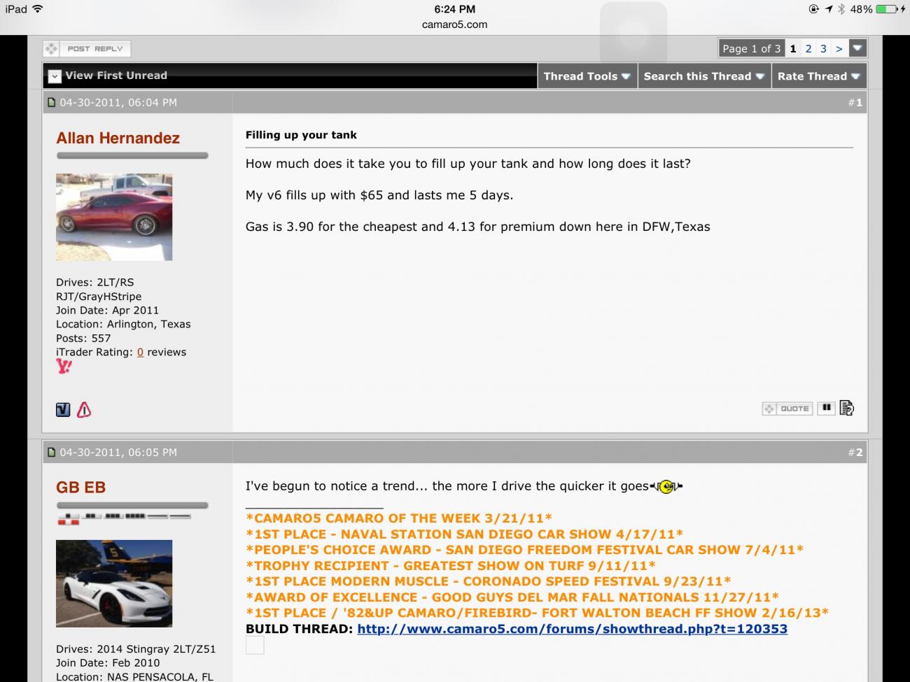 | 1/4 tank or full tank of gas when storing Car | Phil Oliver | 5th Gen Camaro SS LS LT General Discussions | 40 | 09-28-2012 08:10 AM |