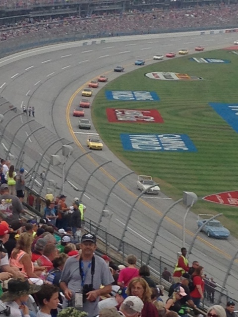 The parade lap had about 50 to 60 Plymouth Superbirds and Dodge Daytona's.
