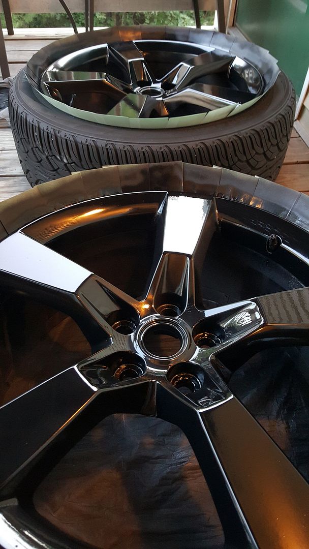 Wheels are done. They were sand blasted and powder-coated. Went with the 60% gloss because they said full gloss will show a lot of slight imperfections, and the 60% was a good compromise between gloss and overall finish.