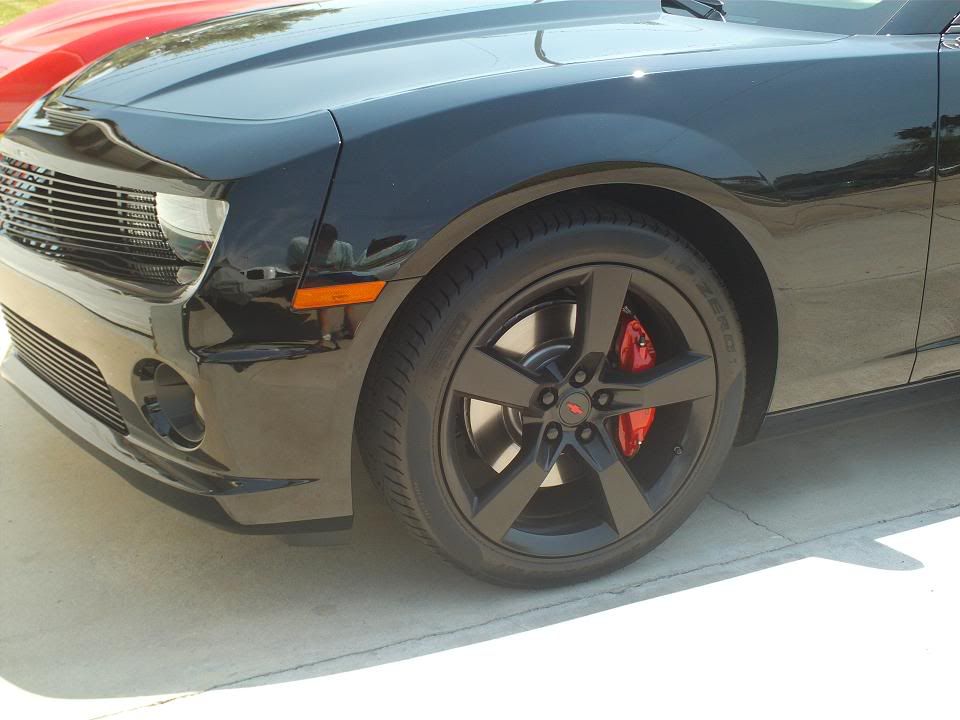 ![]() That is the closest pic that i have. The powder coated was done at my friends shop, but if anyone wants to get theres done should be around 500 bucks. Drop your car off, they dismount tire, powder coat what ever color you want, remount/ balance your tire, then you pick it up couple days later. The grille was done by after market anarchy there website is: http://www.aftermarketanarchy.com/ Ask for Eugene or Jerry and tell him Sam with the black camaro told you about them. They can powdercoat the grille any color. You can also call them for powercoating metal. |