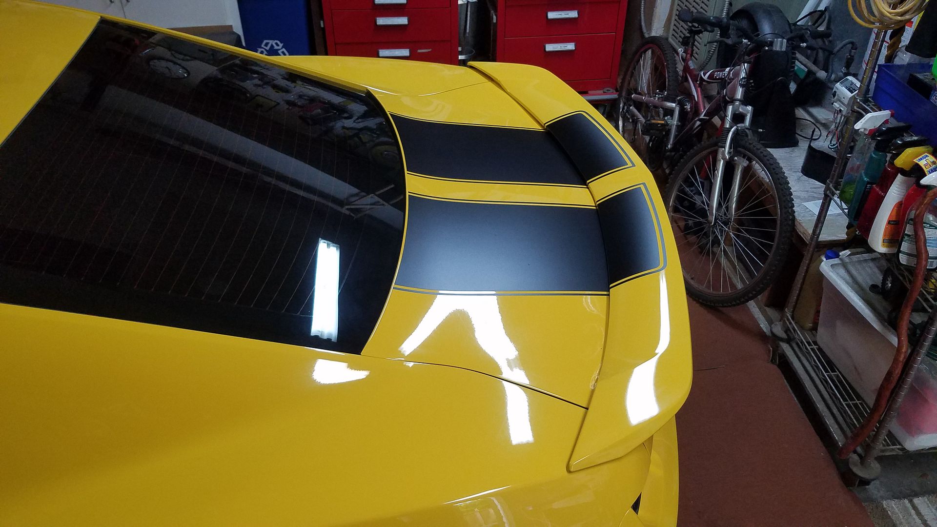 Finally got my rally stripe extensions on my Z/TA spoiler after two failed attempts. First time the striped went on mostly fine with the exception of a couple small bubbles on the leading edge. While trying to work them out I accidentally tore the vinyl. On my second attempt, everything was going great until I was taking off the backing and noticed that they weren't straight.