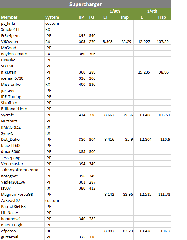 ![]() ![]() ![]() ![]() ![]() ![]() ![]() ![]() ![]() Drives: 2011 1LT/RS A6 RJT SuperCharged Join Date: Mar 2011