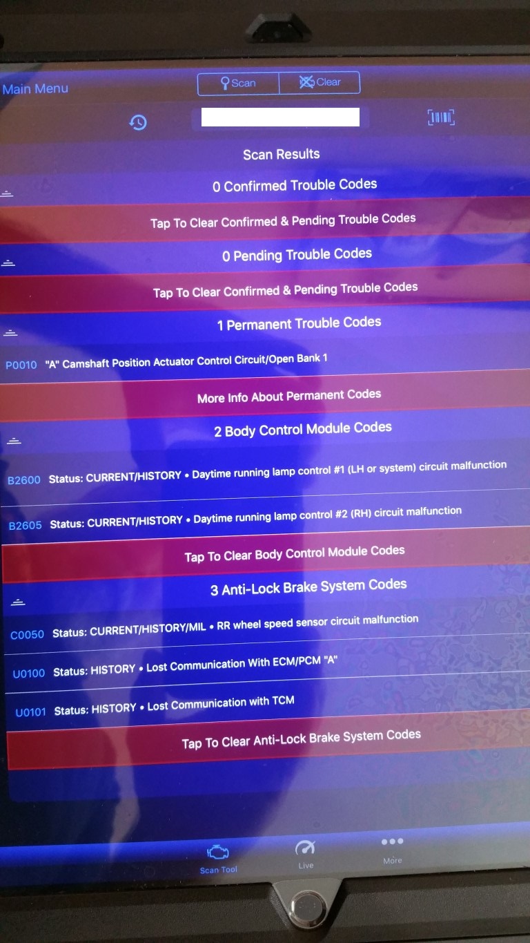 Normally, that would be a spark plug wire loose, but not in this case. Since the coil connector was damaged, I went ahead and replace it on the passenger's side (driver's on it way). I also fixed my tune for VVT delete (more on that later). I had to know 'what' the issue was with the ABS, so, I had this little gem:
