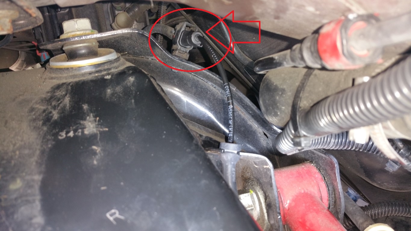 The Code was C0050 -- Right Rear Passengers sensor! Well, I happened to have a 'rear' sensor when I thought I broke it the last time, so, I had to remove it any way (this sensor was like $12). I had to jack up the rear, remove the right rear tire, get to the 'sensor' connector, then unbolt it:
