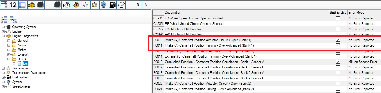 My tune had the 'codes' as not reported but, after talking with Ryan, we both realized we didn't have the VVT 'off'. I know it wasn't off as I was getting a 'permanent' P0010 code (and it won't disappear until AFTER 100 'good' ignition cycles yikes!)
