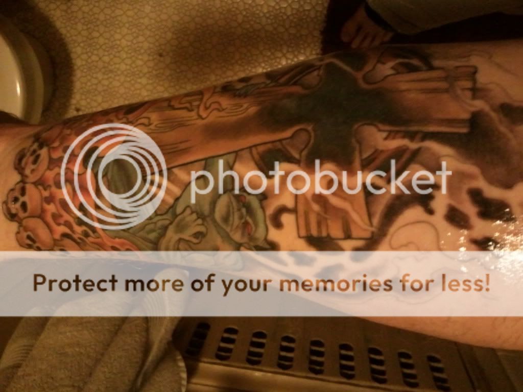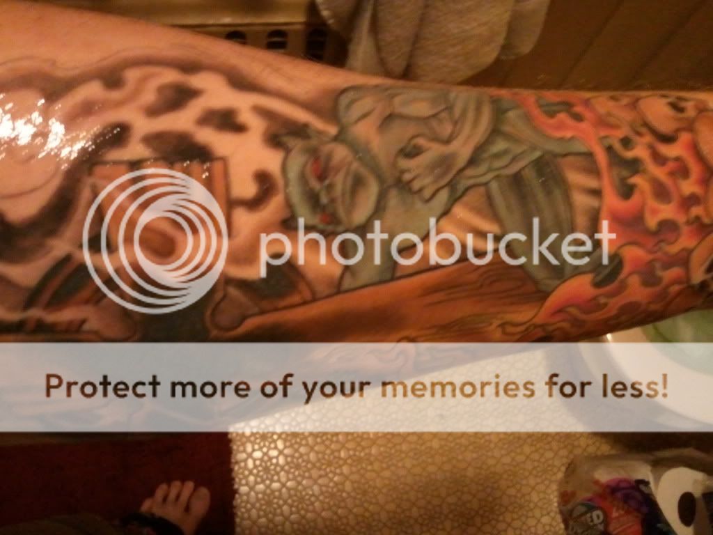 new one as of tonight, kinda wish it was bigger, i was leaving room on my upper arm for a later tatt, just wish i was longer