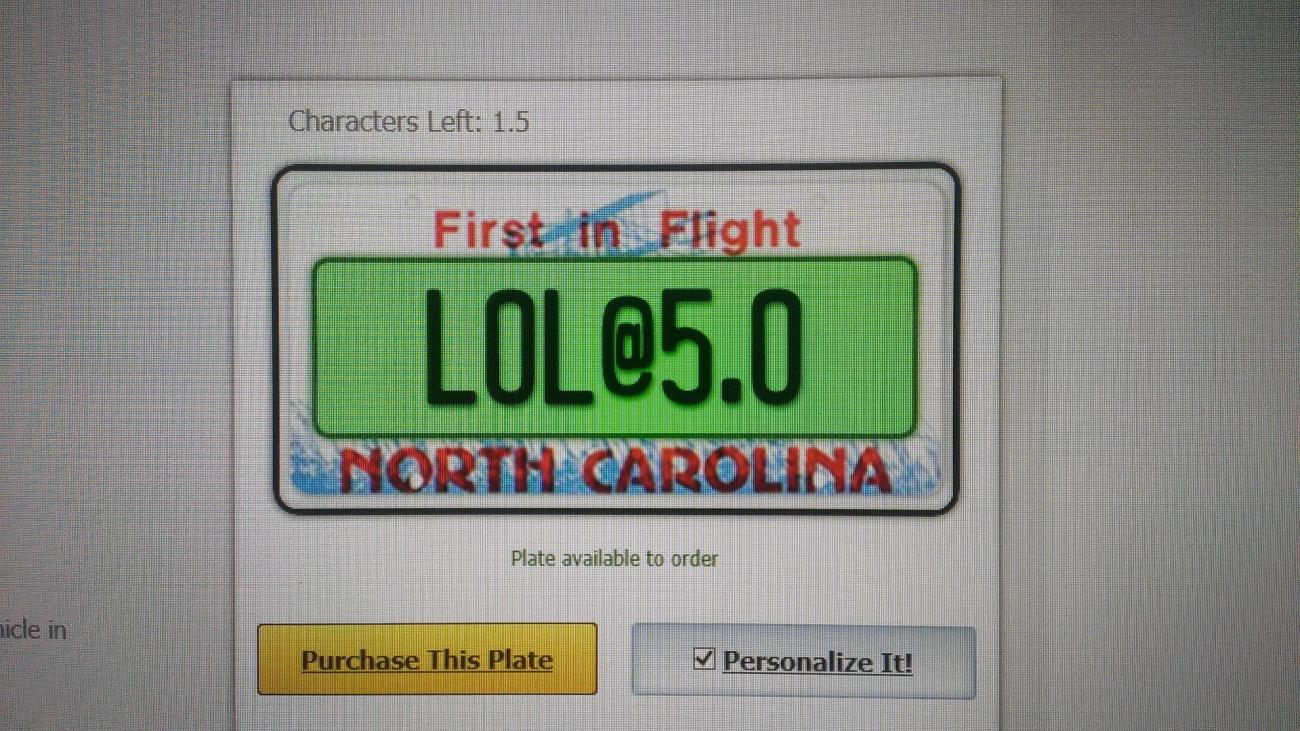 I bought the car for my wife so she order the plates "THX HUN 5". I think she did it so it would look good on her if I drove the car.