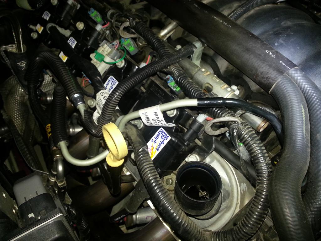 Brake Booster connector: ![]() Driver's side top O/2 Connector (for the O/2 Sensor on the header) back on the driver's side head (rear): ![]() Ground re-installed on the driver's side head (near Oil Pressure Sensor): ![]() Valve installed on rear of passenger's head: ![]() Tagged a few more items in prep for wire extensions for the super charger... -Don Last edited by hammdo; 07-02-2017 at 03:29 PM. |