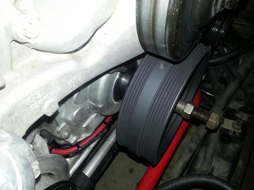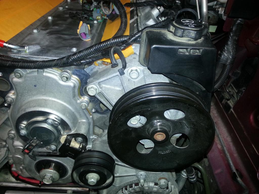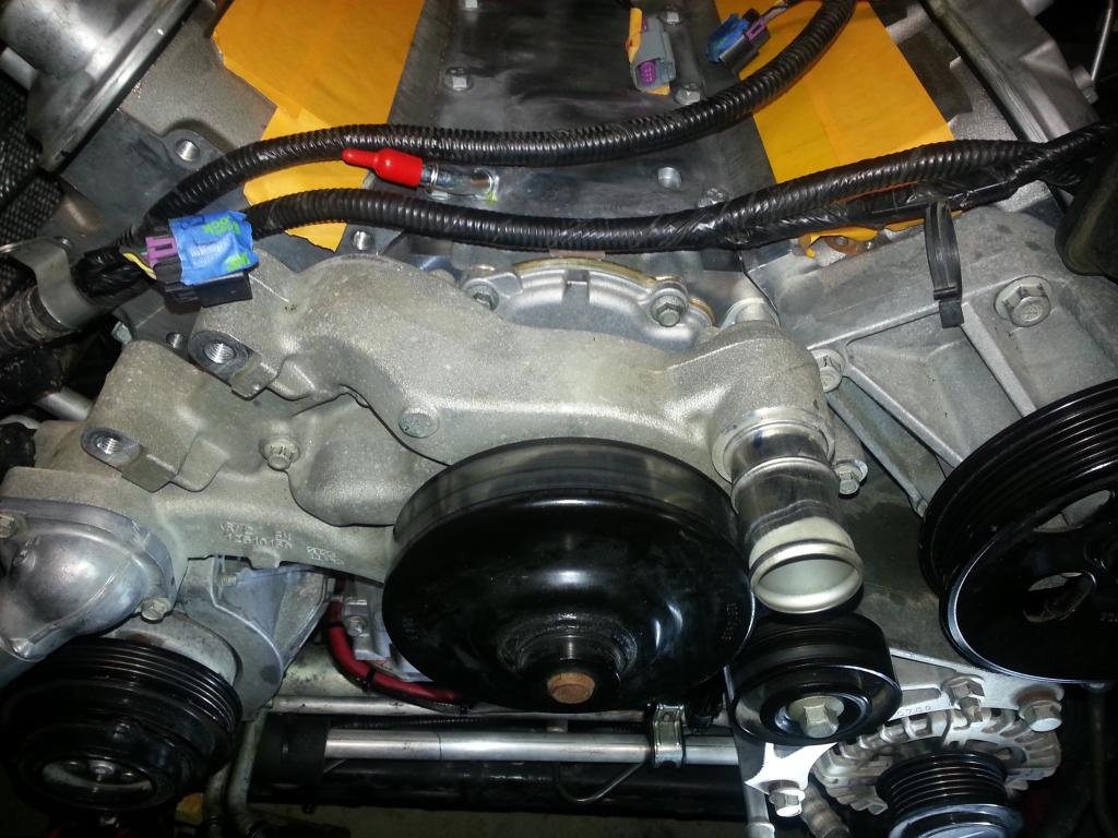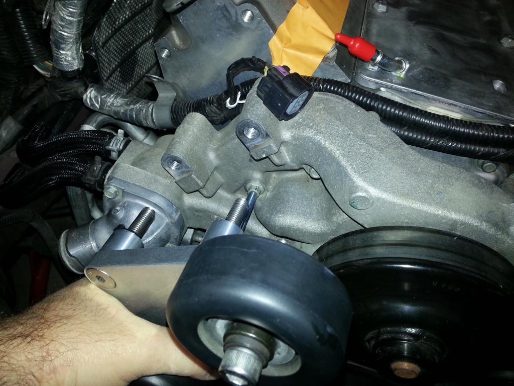 First, the bracket that was on the passenger's head (held the wire loom and ground cable). had to be removed. We'll need to relocate the ground too. First, removed the bracket from the wire harness: ![]() Removed (note the bolt hole on the head near the left. This is where the bracket and ground was on the L99 setup): ![]() Loom: ![]() Now, test fit the pulley assembly (custom made and I believe patent pending by ADM!) and the Tensioner: Tensioner (note where we have to put the wiring path now): ![]() Really need to tuck the wires: ![]() ![]() ![]() ADM's custom pulley assembly. Note we use the original bolt holes and have to remove the water pump bolt (middle of the three on the passenger's side of the pump): ![]() Now, we need to test the 'new' location for the body ground cable. For the L99, it was on the head here: ![]() Manual: ![]() For the ZL1/LSA, its bolted on the head still, but on the 'manifold' side: ![]() So, same cable, different side. I reused the original ground cable stud: ![]() And test the fit here: ![]() ![]() Good to know the LSA had this location! ![]() At least I was able to leverage the 2011 and 2013 GM manuals (I have the 2011 for my 2SS and 2013 for the ZL1/LSA/SC -- really helps!). I will have to test the fit with the headers. From the looks of things, I'll have to grind the stud 'washer' down a bit so things will line up. I do know the other ground that was on the L99 head (near the middle) had no issues with the headers... More to come -Don Last edited by hammdo; 07-02-2017 at 03:29 PM. |