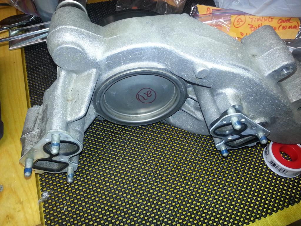![]() ![]() Alternator next (torque to 37 ft. lbs): ![]() Power Steering (torque to 37 ft. lbs): ![]() ![]() Now water pump with new gaskets (first torque to 11 ft. lbs, the second pass to 22 ft lbs): Gaskets: ![]() ![]() Ready to go!: ![]() Installed!: ![]() ![]() Now the heater hoses (remember the AGS lube!): ![]() Rotated the engine to make sure nothing was binding now... Ready for the Balancer!: ![]() -Don Last edited by hammdo; 07-02-2017 at 03:30 PM. |