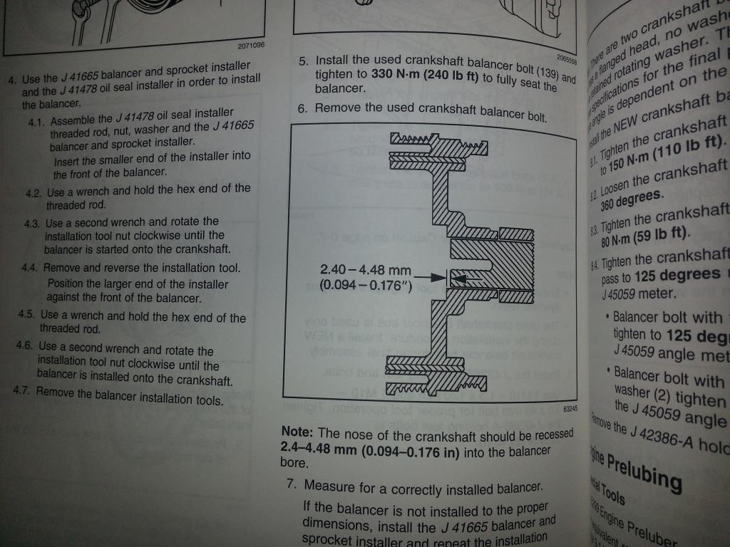 So, using the LS3 tool to install, installed the balancer and then checked the depth: Balancer: ![]() ![]() LS3 Install tool -- what a great tool to have: ![]() Using old bolt, torqued to 240 ft. lbs: ![]() Validate depth: ![]() ![]() ![]() Woot! 0.146! In spec: ![]() Next, I'll pin that puppy for the SC! -Don Last edited by hammdo; 07-02-2017 at 03:30 PM. |