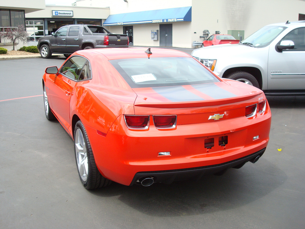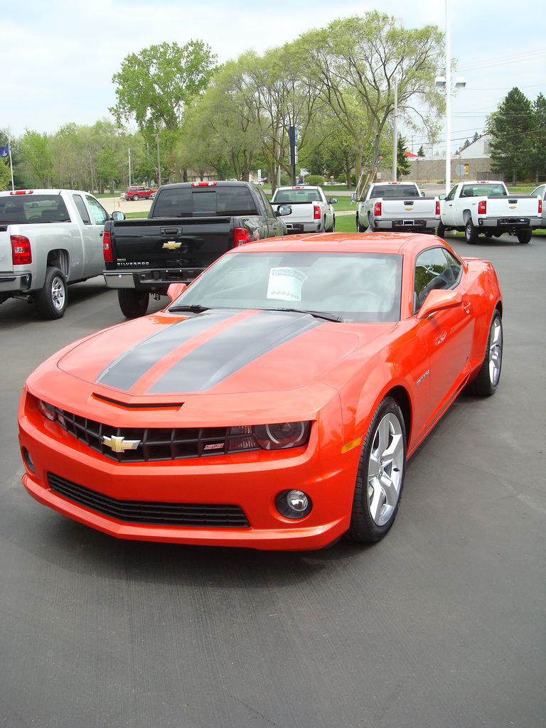 IOM with optional orange rally stripes. You would have to order the stripes seperate as you can not order a IOM with orange stripes. I think orange on orange would be a subtle touch. Just want to see if it is as nice as I think it would be. They look nice on the black Camaro but I have yet to see them on orange. I know the black with black rally stripes looks sharp so I figured this combination might look awesome as well.