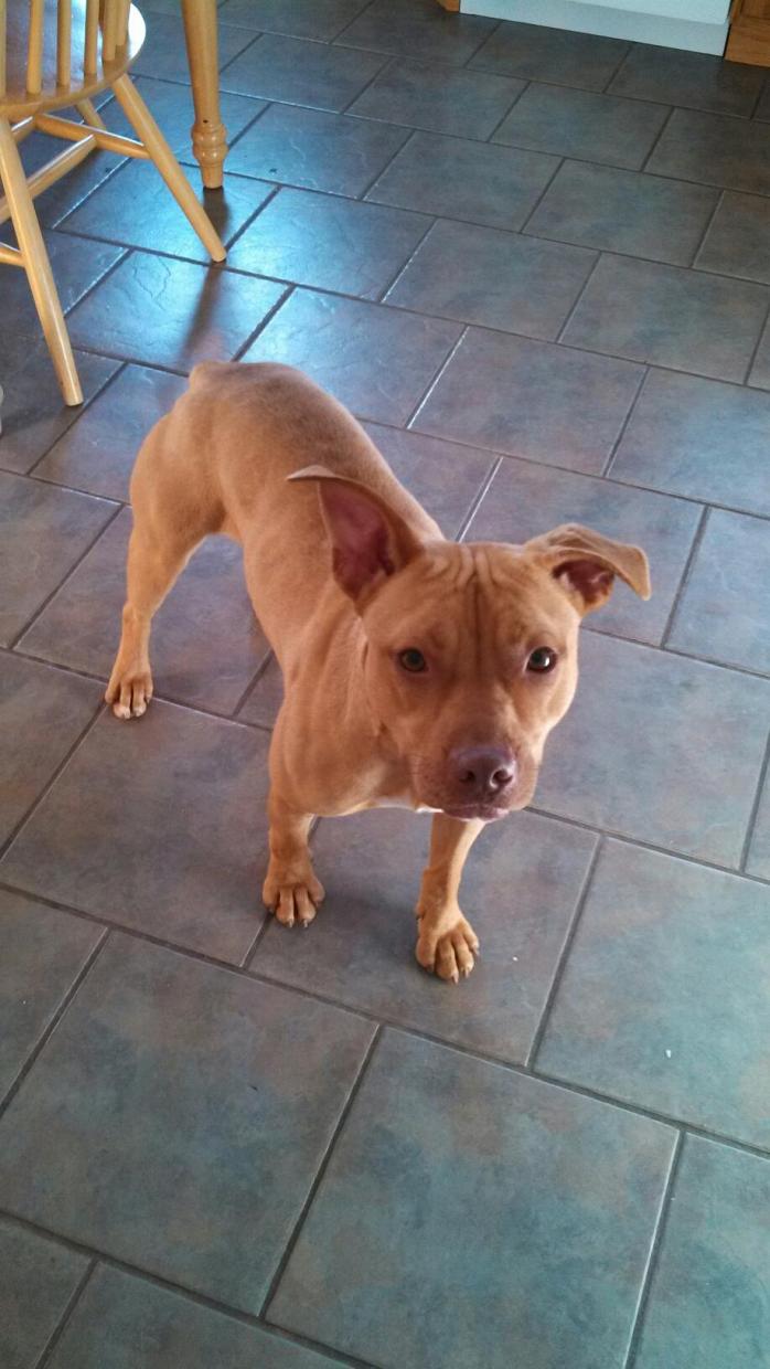 The newest addition to our family, Fuschia. We adopted this beautiful lil pitbull Thursday afternoon from the rescue. She gets along so good with the kids and loves to lick and play.