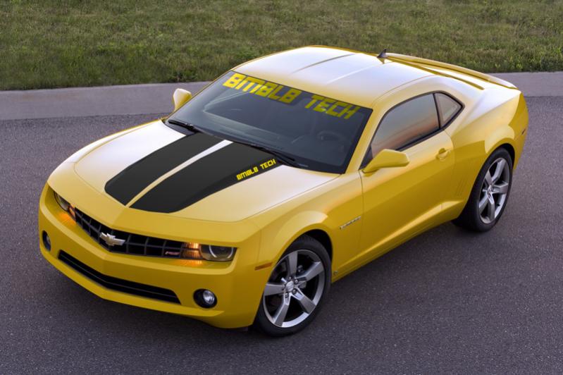 Hey can anyone do a decent photoshop of a Rally Yellow w/ Black Stripes ( the transformers one basically ) with the words "Bmblb Tech" on both sides the hood scoop (basically where it says Transformers on the transformers edition), and top of the front and rear windshields. I need the text in Rally Yellow. I am a bit of a PS noob, so I need some help. Thanks in advance, null_x86