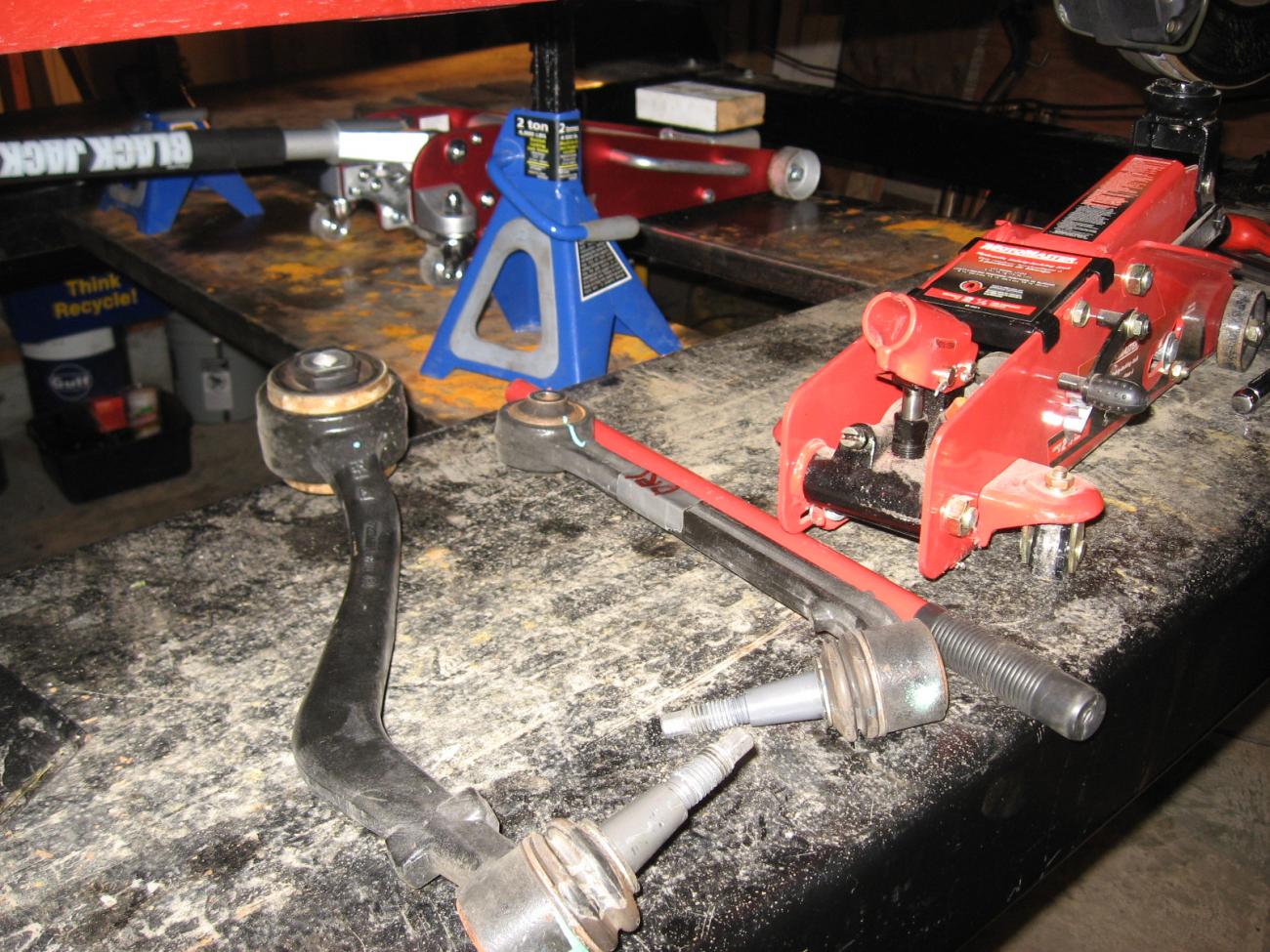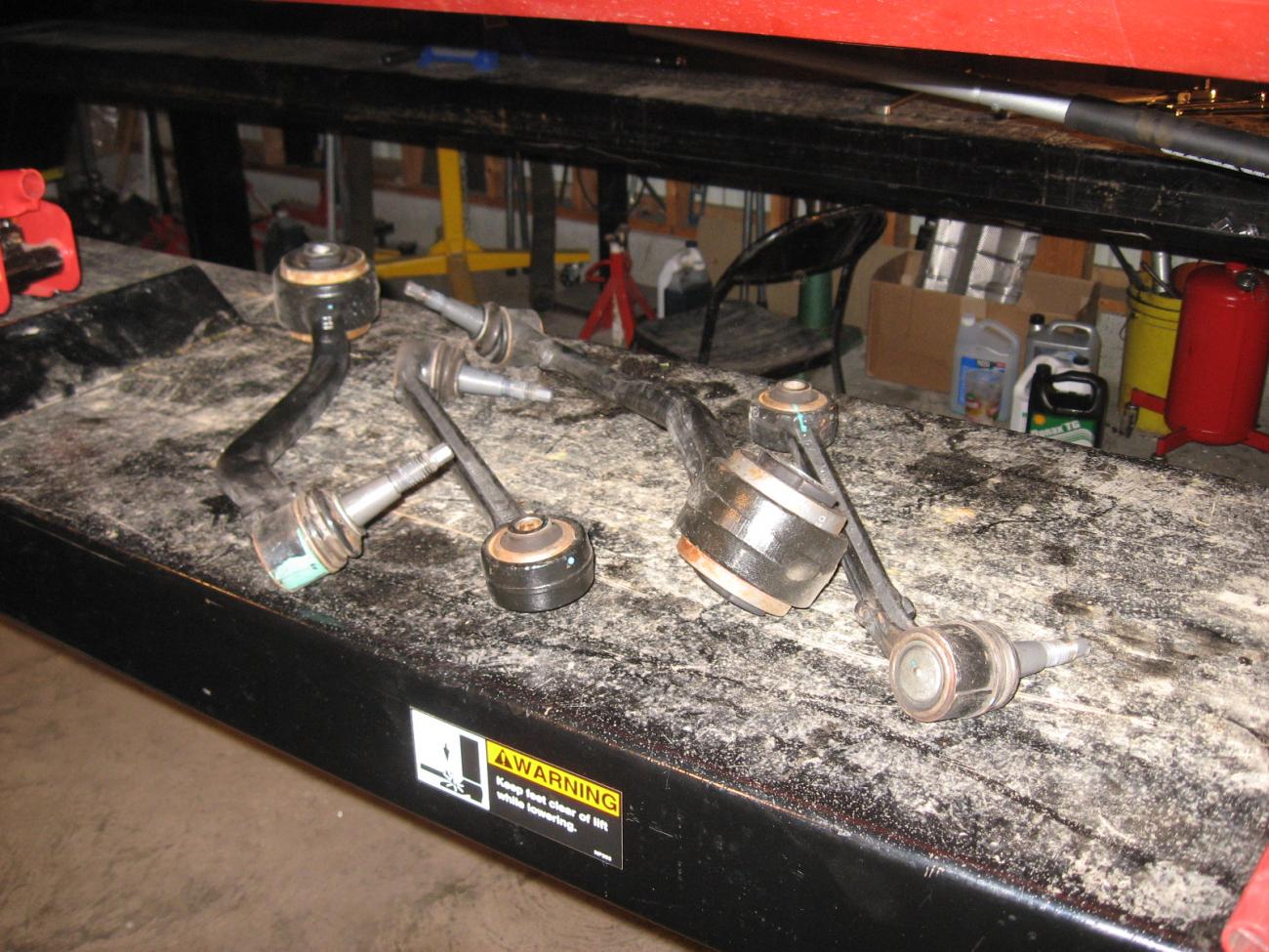 Here we go front suspension Day #1. Goal was to remove front suspension parts to facilitate bushing removale and repalcement. Sorry Guy's no pic's of bushing installation, but it was very easy could done with a vice. Thanks to Bill and Derrek for there help.