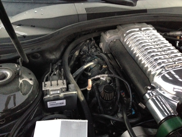 . I also took the time to install my Hex Vents! I couldn't believe I was drilling and cutting my own hood, but Steve's instructions are fantastic. To fit the whipple I positioned the vents 1/2 inch wider and 1/2 inch farther back. I'm happy with the way they turned out. I'm hoping they help reduce a little lift during my mile event...last year the car was floating at 180, so if I get near my goal I'm sure she'll be a little light on her toes!I'm still waiting on some color match trays, so these pics don't have trays...I ended up plasti-dipping the stainless trays, but I rushed it, and not happy how it turned out... Can't wait to get some good pictures...