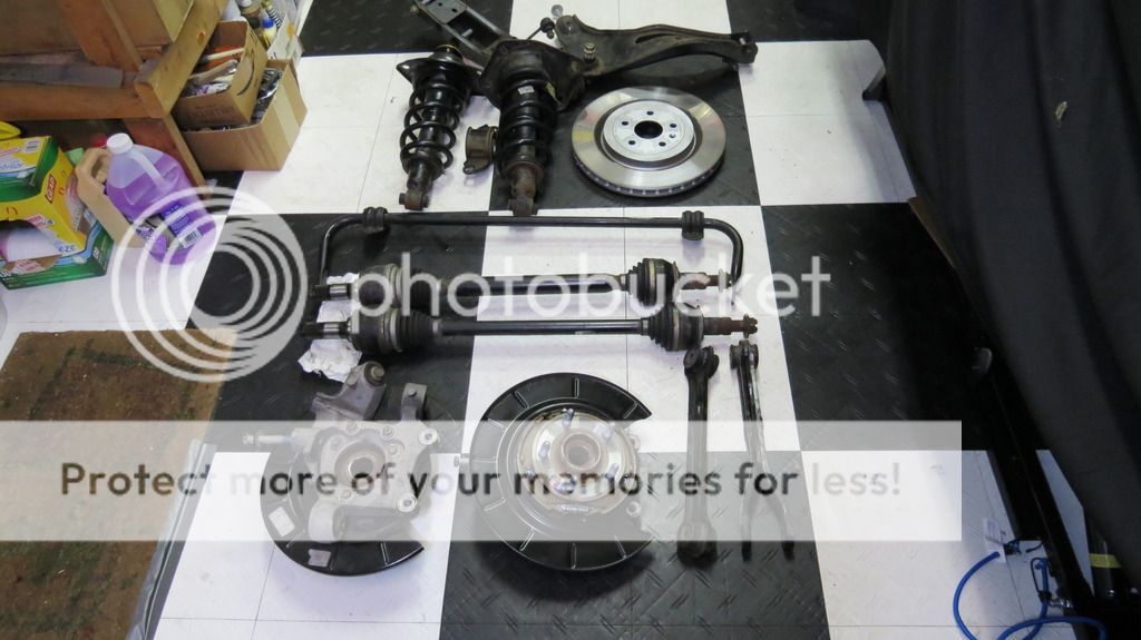 REAR CRADLE SUB FRAME BUSHINGS - these can be removed using the 1” Socket and Torch method. Put a hydraulic jack under the Diff. I also used (4) Jack Stands for safety. Remove one 24mm Sub-Frame bolt, screw it back in 1/2" and repeat on the remaining three. Remove two sub-frame bolts on either the driver or passenger side. Lower the jack under the differential just enough to place a 1" socket in between the top of the sub-frame bush ferule. Use the second floor jack to lift the corner of the sub-frame with the socket. Add pressure once you are sure the socket is secure between the top of the bushing ferule and the 'frame' rail. Start with the Left Front. When you start to lift the car off the jack stand or Hoist/QuickJack, heat the metal that surrounds the sub-frame bushing. Keep heating until the bushing falls on the floor. Repeat on the Left Rear, you have to heat the hell out of it as it is a larger bushing. Clean the inside of the Bushing Housings in the Frame with a drill and wire wheel. Pop off the Bottom Bushing Metal Caps with a Pry Bar or Socket and extension. Install your new Bushings, I made a tool, ref the pics. Note – it is very unlikely that you can use the Vehicle’s weight or Cradle Bolts to seat the Rear Bushings, it will strip them. Use the lube supplied with the Bushings! Screw in the Cradle Bolts at least ½”. Repeat on the other side. Carefully cinch the Cradle up ensuring the Rear Dowel’s are aligned and the Cradle is seated, and Torque the (4) 21mm Bolts to 130 Ft Lbs. These are TTY, you should buy new! ![]() ![]() ![]() ![]()