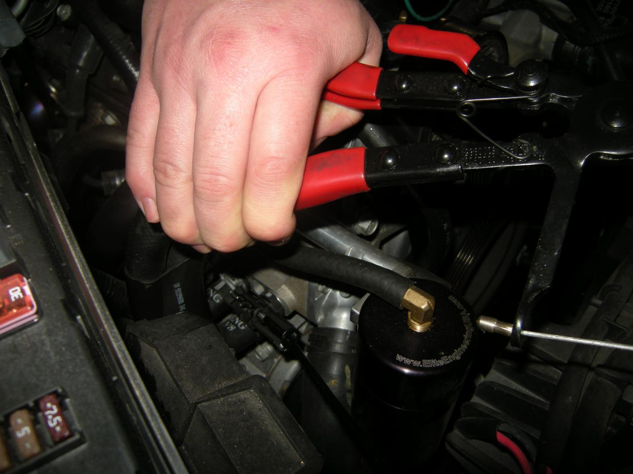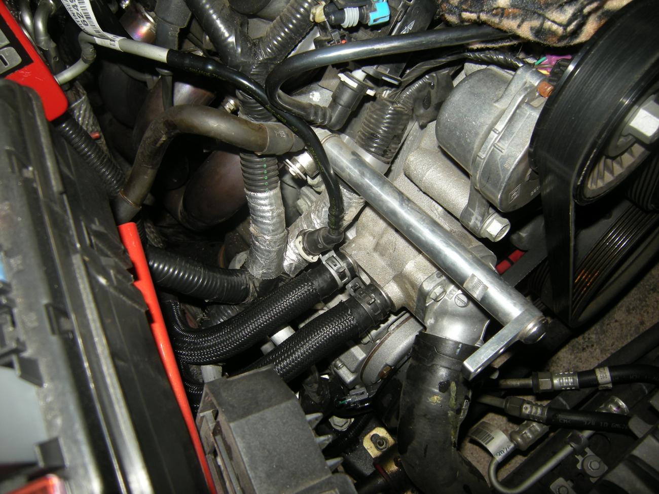 Day two we had some issues, we started off with completing the heater hose relocation and found that there are no existing mounting holes in the 2010 frame to correctly mount the tab to the frame.