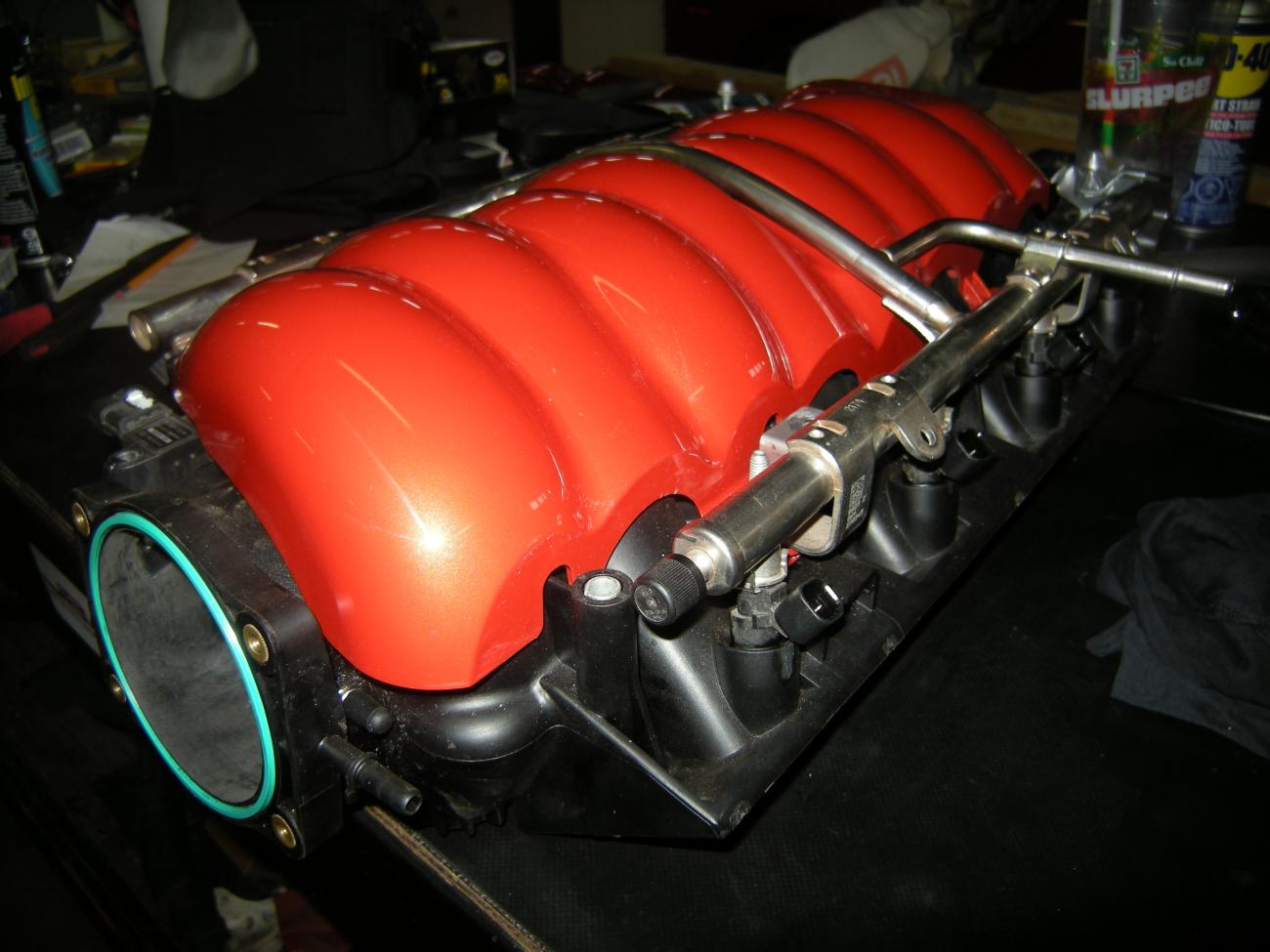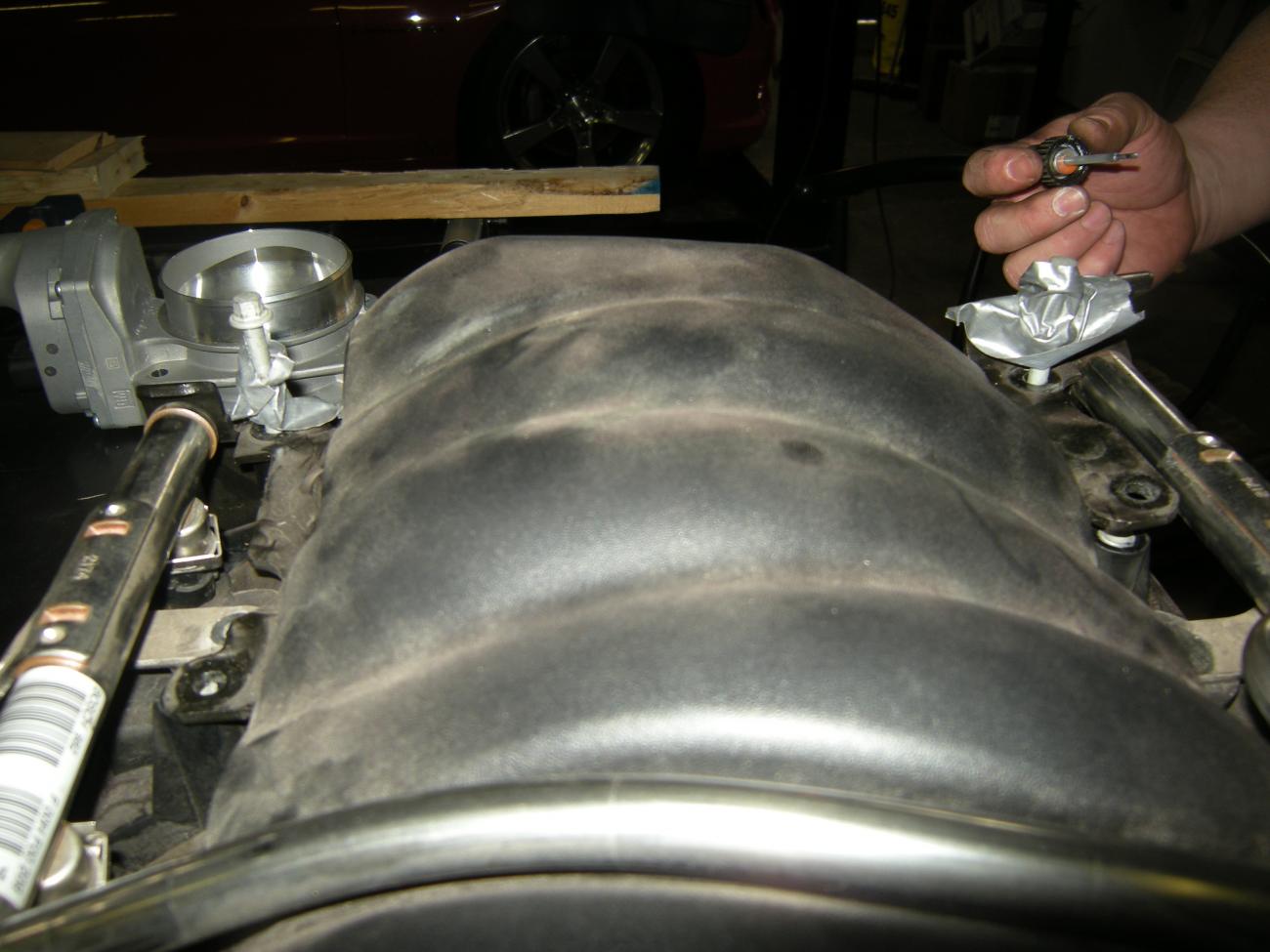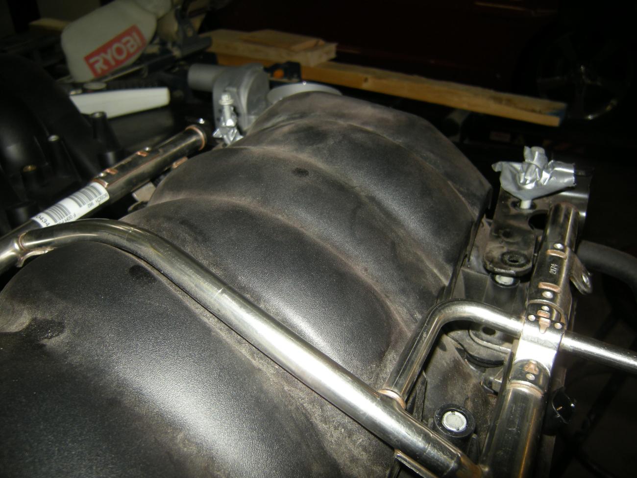 Were back to work on Pumpkin installing the Rhino prepared manifold, Vmax PTB, GM heater hose relocation kit an SLP UDP and Rhino tune. Things went fairly well removing the manifold except those stupid little green safety locks on the injectors, man there a pain and the clamps at the heater core are a bit difficult even with the cable driven clamp remover.