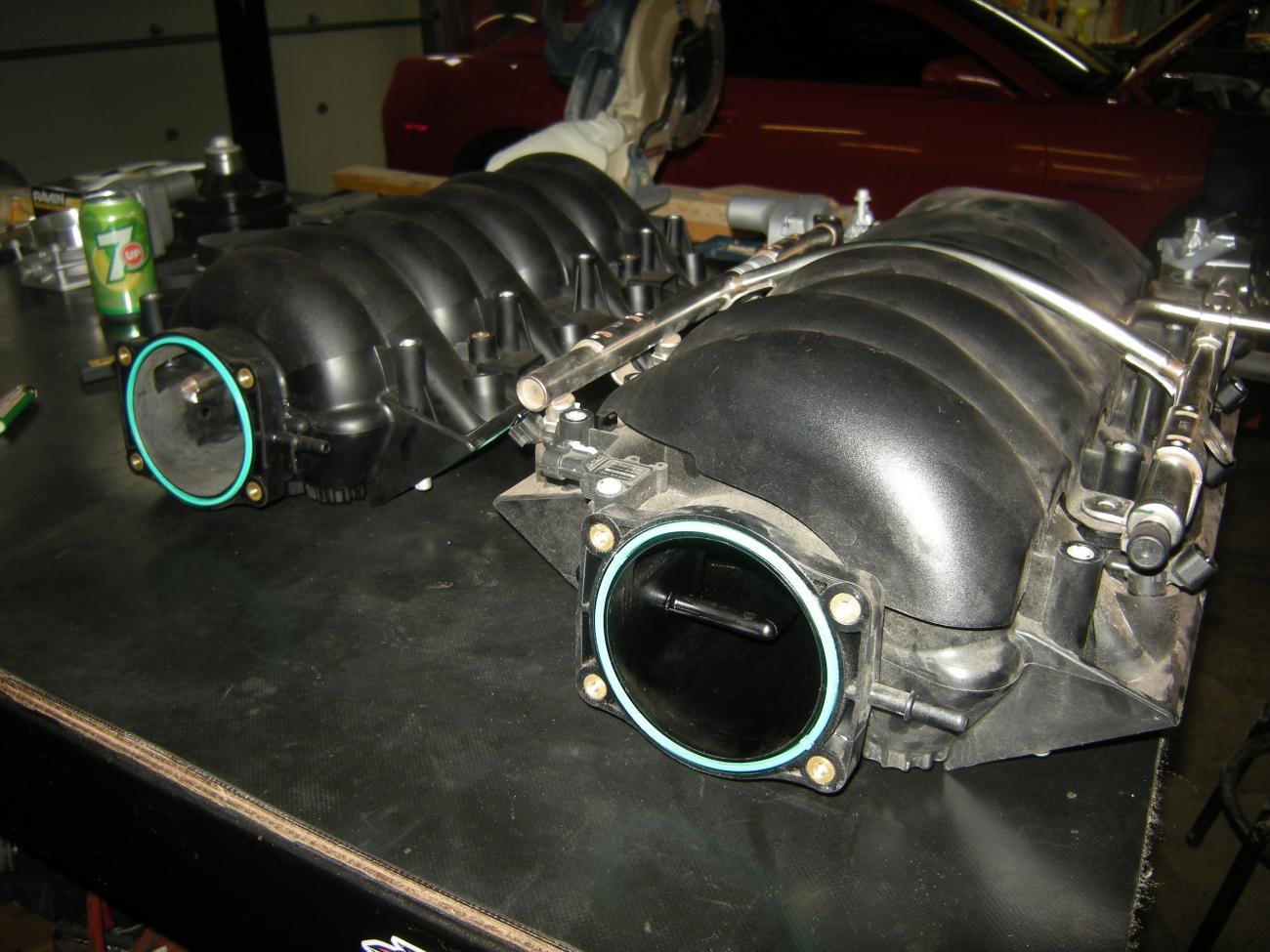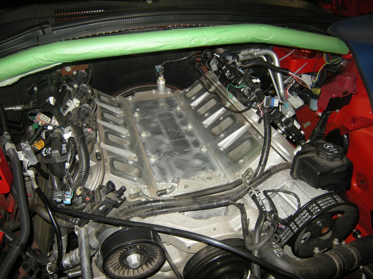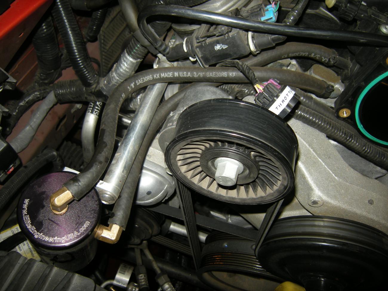 Were back to work on Pumpkin installing the Rhino prepared manifold, Vmax PTB, GM heater hose relocation kit an SLP UDP and Rhino tune. Things went fairly well removing the manifold except those stupid little green safety locks on the injectors, man there a pain and the clamps at the heater core are a bit difficult even with the cable driven clamp remover.
