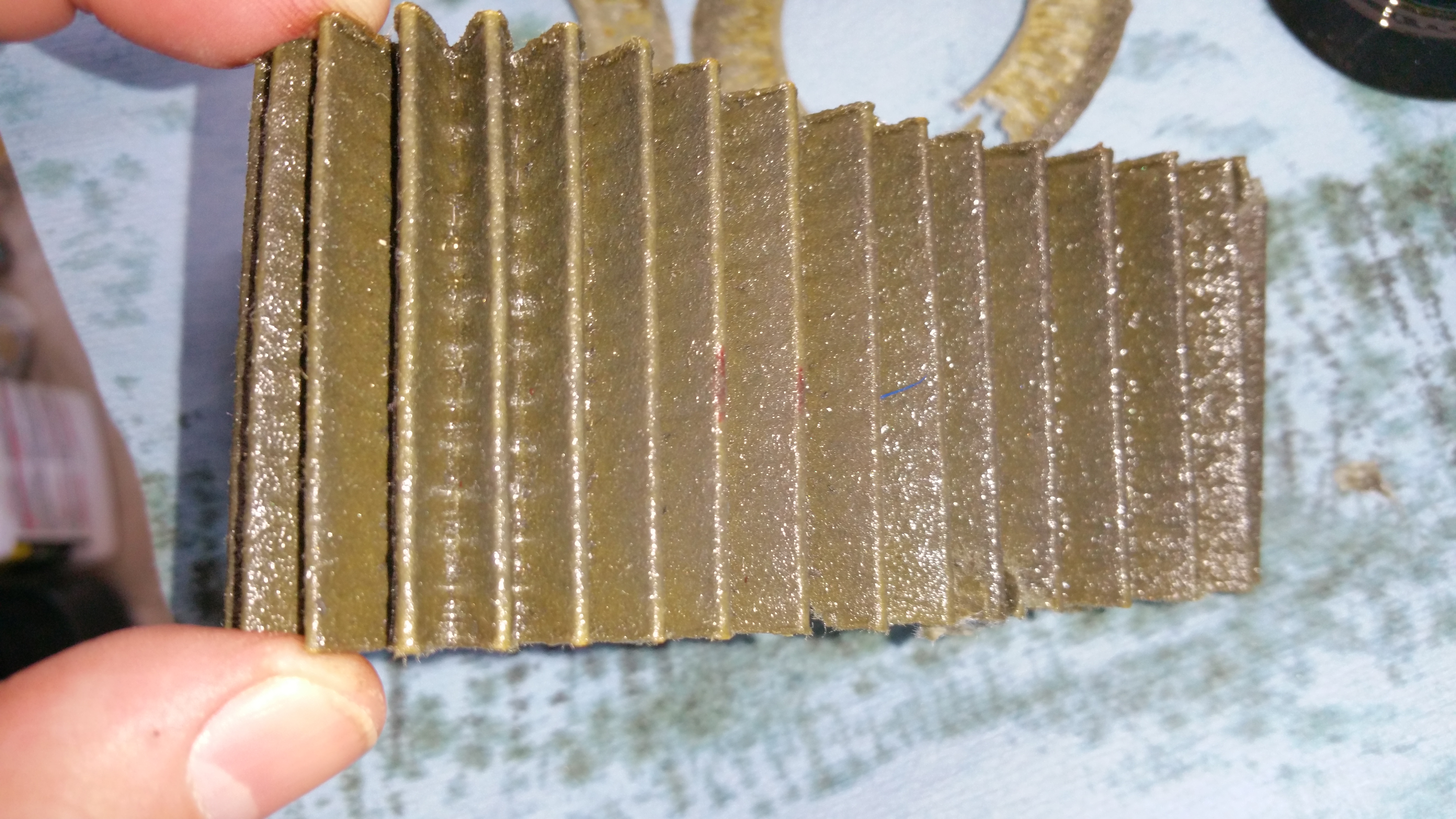 Here is the cutter I used: ![]() Filter element: ![]() ![]() ![]() ![]() ![]() When I cut the filter open, you could see the 'silver streak' that comes out after an initial break in of an engine. When I drained the engine oil, I did not have a 'magnetic' plug, but, didn't see any big material. I'll add one the next time -- did order the Blackstone kit to test it from here on in. -Don