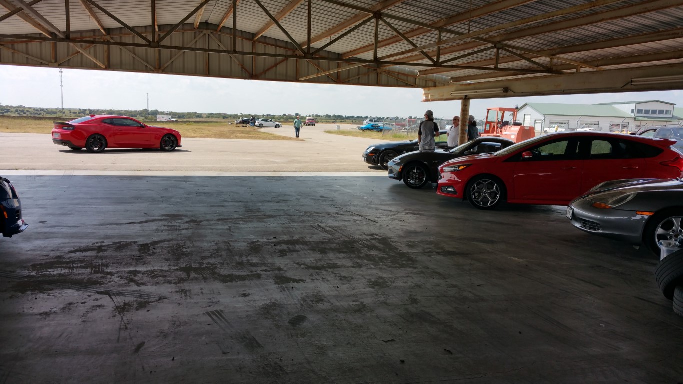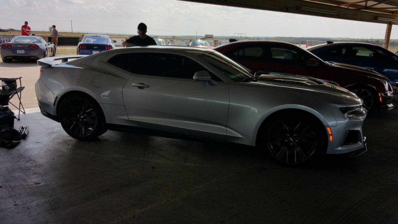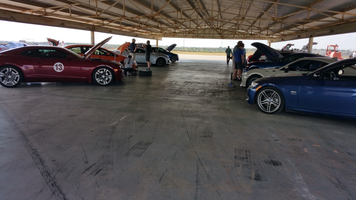 Pavilion where we all parked (early bird wins here ;o): ![]() Just some of the cars that raced today: ![]() New ZL1: ![]() My last session of the day (10 minutes!) as the heat finally got me (over 100° today! Learning a new track and the updates to the car at the same time): So, everything held up -- except the trans temps got up there -- let it cool down, last session, she did much better on the trans temps. Will need to add more cooler for it (Mishimoto oil cooler REALLY worked well though!). DriversEdge has 3 more events and SCCA of Texas has a PDX that has an instructor with you and its a 'timed' event! Now that sounds like fun! -Don