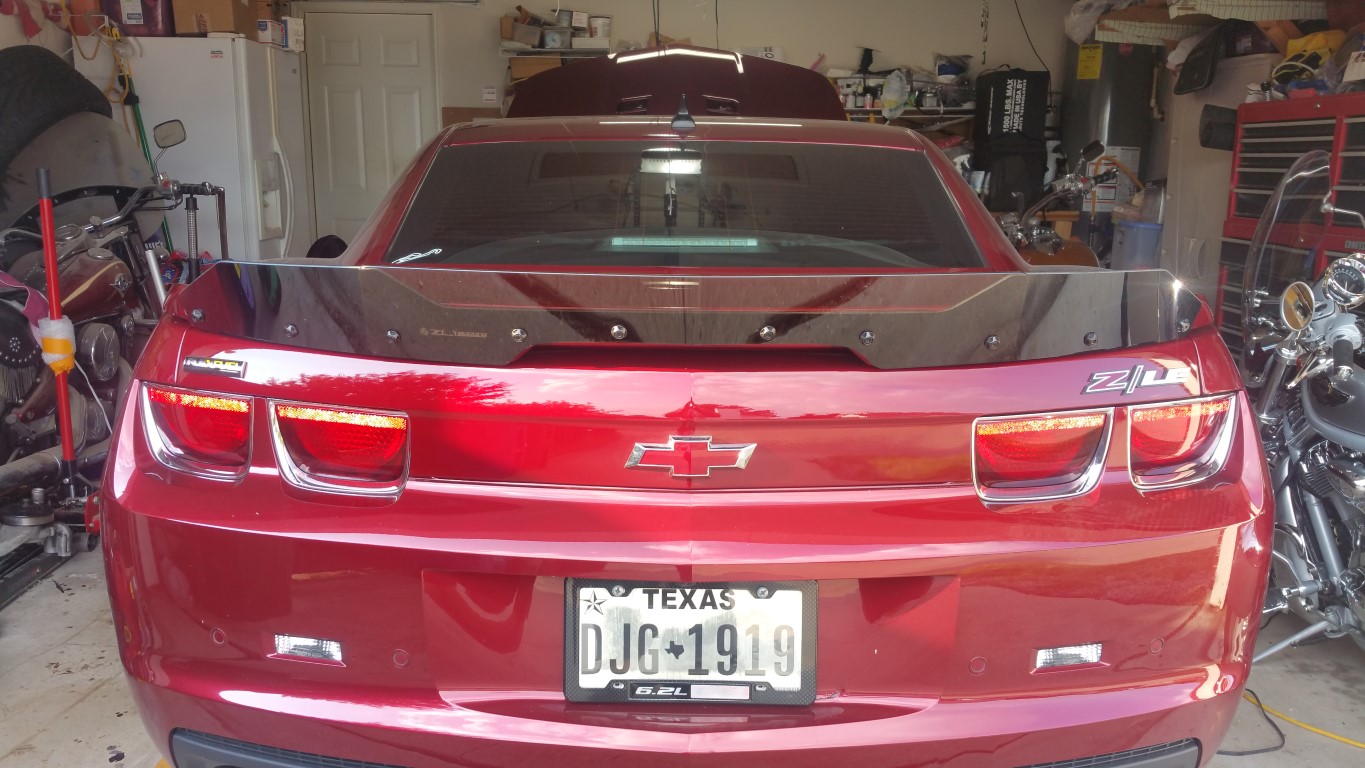If you 'measure twice, cut once' its a very easy job -- I took my time, had it done in under an hour. Unboxing: ![]() ![]() ![]() Here is the riv-nut tool and how its setup: The 'bit' that goes into the riv-nut gun is left hand threaded so keep that in mind: ![]() ![]() ![]() ![]() Riv-Nut on the 'gun': ![]() ![]() Here, I measured twice then, drilled a 1/8" pilot hole on just the 2 center marks: ![]() Opened them up (25/64 bit or 9MM) then just size them enough to fit the riv-nut: ![]() First two are on! ![]() Now install the wicker bill (just on the 2 riv-nuts) and then mark and then drill the 'Pilot' holes first. Remove the wicker bill, then drill out the rest of the holes to size. Once that is done, work from inside to outside installing the riv-nuts -- this tool makes it very easy to install them! ![]() ![]() Check to make sure none of the riv-nuts move -- if they do, tighten them down just a little bit more using the riv-nut gun -- you'll feel it. After all of the riv-nuts are installed, remove the protective cover off the lower wicker bill, and install that side facing the rear of the car. You'll install the left 2 outer and right 2 outer bolts/hold-downs - just loosely snug. Then install the 'clear' bill over-lapping the lower wicker bill -- then install the bolts and after that, tighten from inside to out equally (1 right 1 left -- back and forth) to ensure the wicker bill will 'equal out to the ends'. Tight up and you're good to go! Mine took a torx 30 bit to install them. Follow the directions (it says how 'high' up it should be - about 1/4" above the deck lid). Here it is in all its glory: ![]() ![]() ![]() ![]() ![]() ![]() Excellent product! Here is a video of one of the Camaro5 family (Antares) getting his installed by John -- a side note: my friend 'Eric' (the white dude ;o) was enjoying some 'trash talking' at the same time: Loving it! -Don